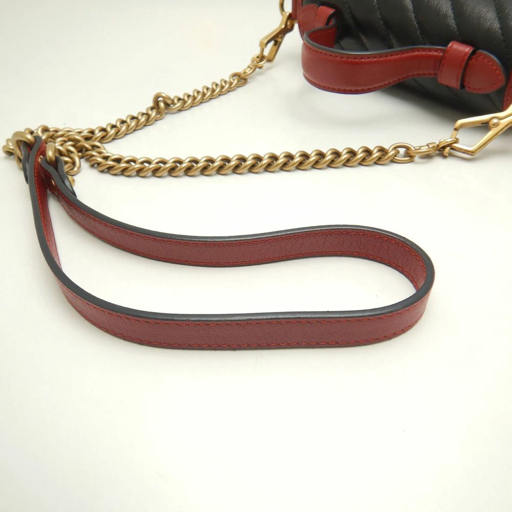 | 商品説明 | | 取扱店舗 | ミドリヤ本店 | | 状態 | 中古ABランク | | 型番 | 583571 | | ライン | キルティングスモール | | 素材 | レザー | | 色 | ブラック / レッド / ゴールド金具 | | サイズ | W20cm×H15cm×D7cm [ショルダー]約115cm