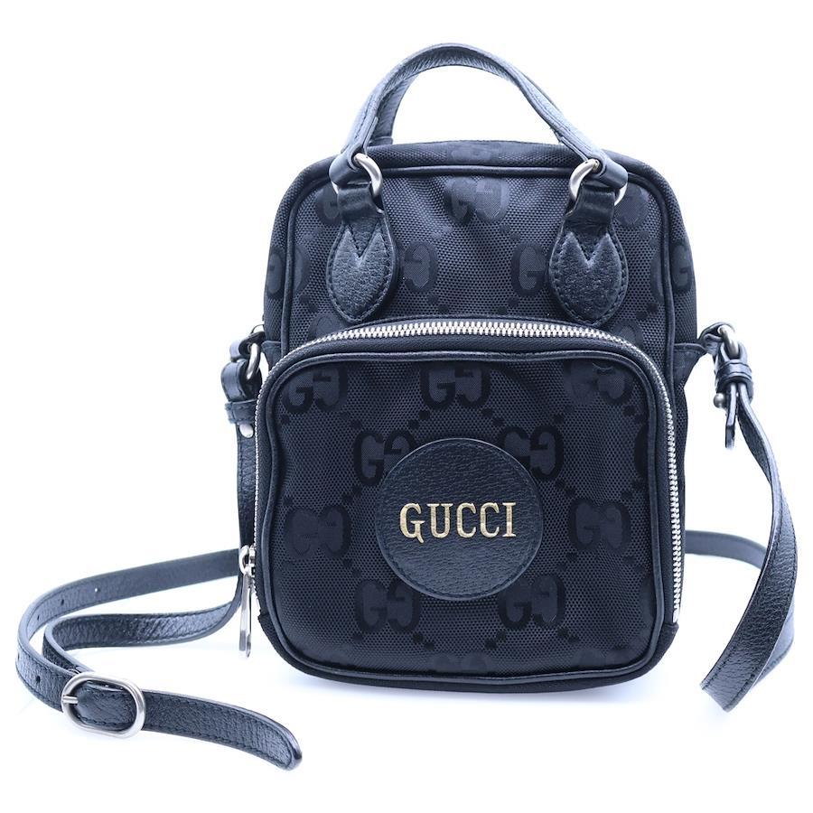 [モデル]GGナイロン オフザグリッド 2WAYショルダーバッグ ミニハンドバッグ ブラック シルバー金具 ナイロン×レザー 625850
