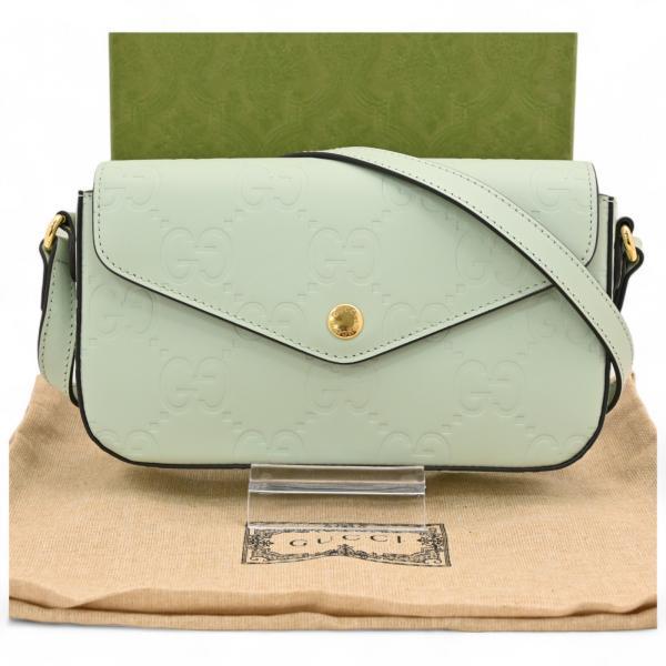 ーーーーーーーブランド 美品 グッチ GUCCIGG エンボス ポシェット 鞄クロスボディ 斜め掛け かばんグリーン系 緑 レディース 女性ギフト プレゼント 贈り物クリスマスプレゼント 箱 袋ーーーーーーー11.2DB-80