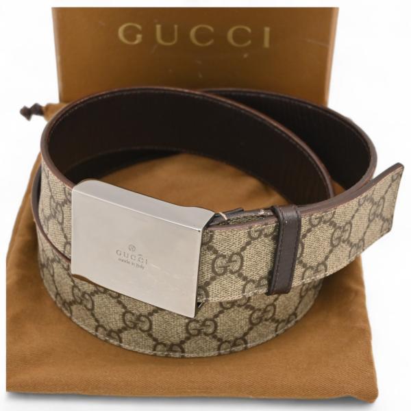 ブランド 中古 グッチ GUCCIGG柄 総柄 GGスプリームベルト メンズ 男性 紳士ギフト プレゼント 贈り物クリスマス 箱付き