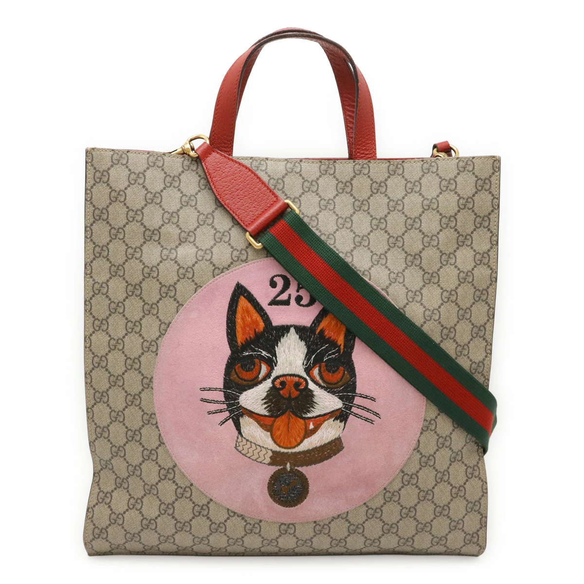 GGスプリームキャンバスにあしらわれた、ボストンテリア犬 Boscoのアップリケが可愛らしいデザインです。
