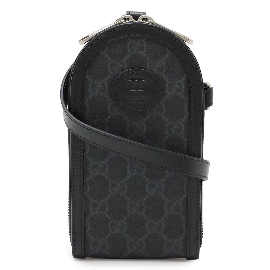 【商品説明】[サイズ]W10.5cm H19.5cm D2.5cm ショルダーストラップ最長約117cm(5段階調節可、金具含む)[材質]GGスプリーム キャンバス(PVCコーティング)/レザー[カラー]ブラック/グレー[仕様]内側ポケット2[付属品]外箱 保存袋 ショルダーストラップ[重さ]約290g