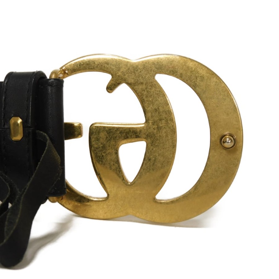 | グッチのGGマーモントモチーフのバックルをデザインした「GGエンブレム ワイド レザー 40MM」ベルトです。 |