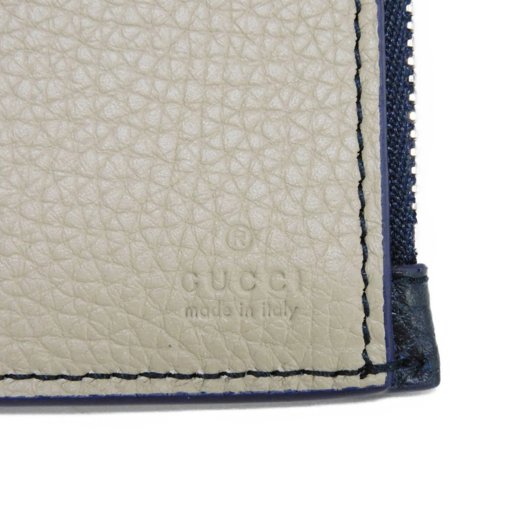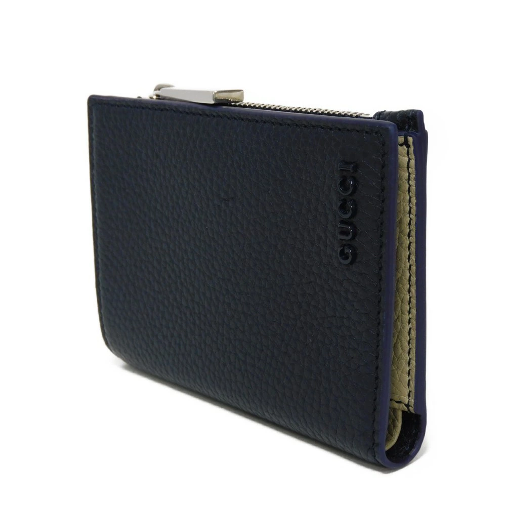 Gucci GUCCI Bifold Wallet with Coin, Oatmeal Interior, Current Model, Greige, Two-Tone, Dark Blue Logo, Excellent Condition, 817021 AAEGG 4043, Men's Wallet, Elegant, Luxury, Sophisticated, Brand Name [Pre-owned]