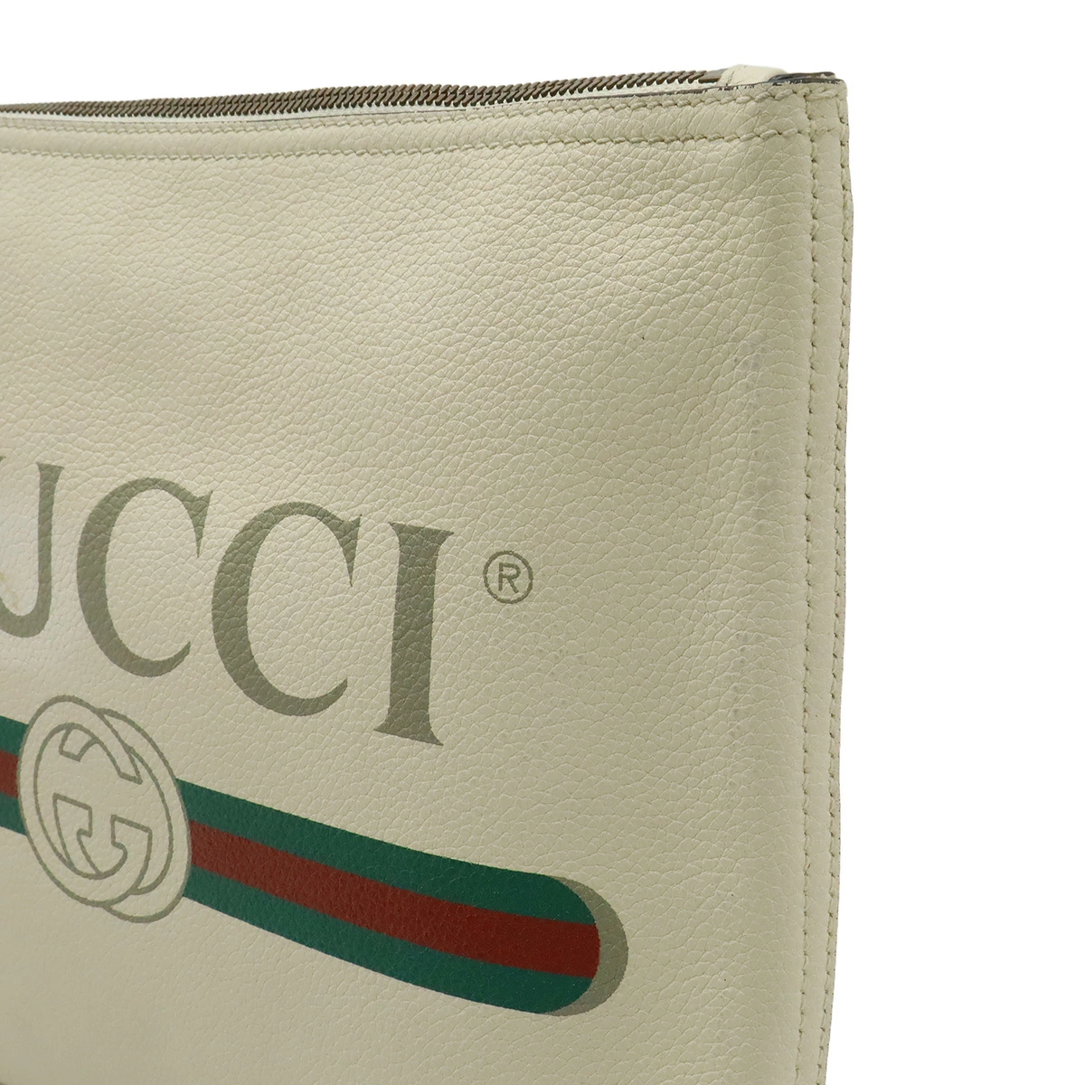 ロゴがプリントされたグッチのクラッチバッグ。