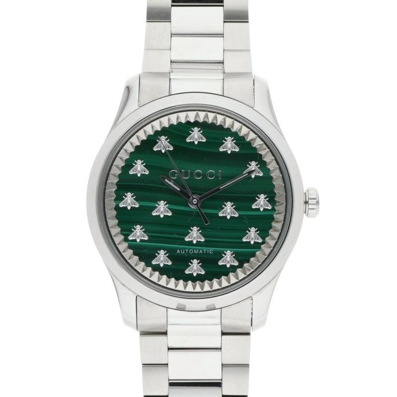 ランク:B (使用感がある商品)状態備考:ベルト部分に擦れがありますブランド:グッチサイズ:-色:シルバー×グリーン実寸:ケース横38mm(リューズ込み41mm) ベルト幅最大2cm 手首周り19.5cm重さ:-素材:表記なし付属品:箱ありその他特徴:-管理番号:15274-250827-0250
