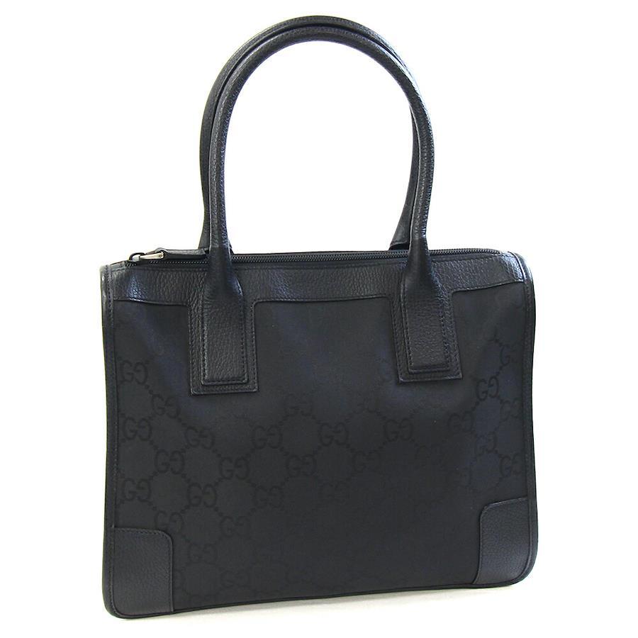 グッチハンドバッグGG143742ブラックナイロンレザー中古ショルダーバッグ肩掛けブリーフケースビジネスレディースメンズGUCCI