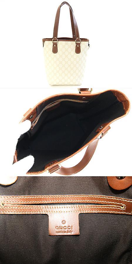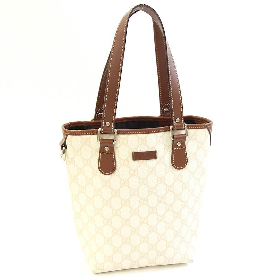 グッチハンドバッグGGスプリーム189897アイボリーブラウンPVCレザー中古ミニバッグバケツ型ロゴレディースGUCCI