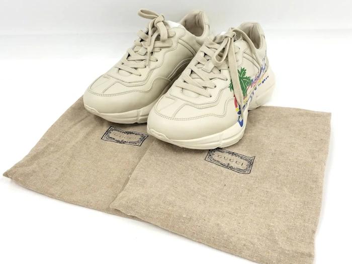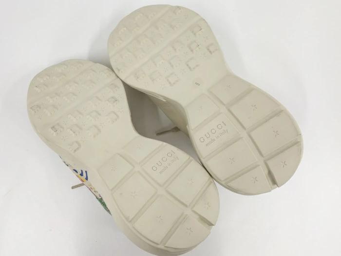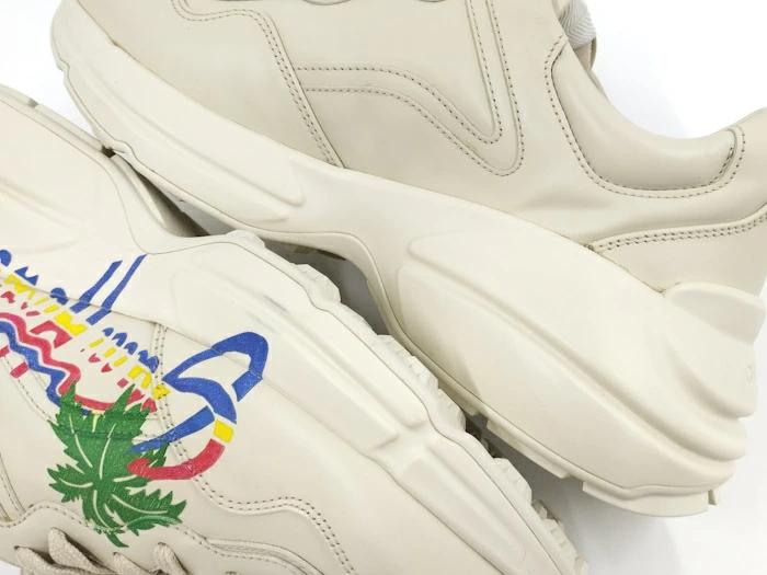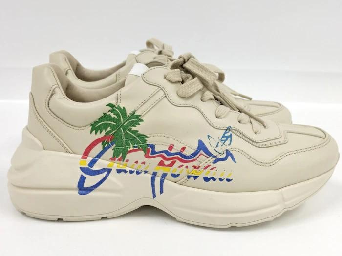 GUCCI Hawaii Print Sneakers, Size 5, Leather, Beige, Multicolor, 630652