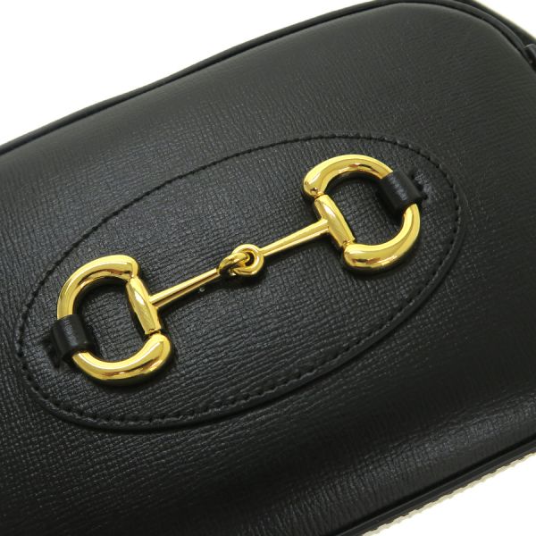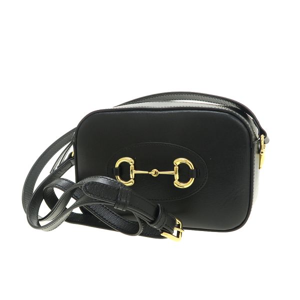 グッチ定番のホースビットからコンパクトなシルエットが魅力の『ホースビット1955ショルダー』が入荷いたしました☆シックなブラックのレザーにダブルリングとバーで構成されたブランドの代表的なモチーフ"ホースビット"が目を惹くシンプルながら上品さと高級感漂うアイテム。開閉はファスナー式で、内側にはスリットポケットがございます。お財布やスマホ、ちょっとした小物など最低限の必需品を持ち歩くのにおすすめのサイズ感となっております。状態はAランクで、表面のスレ、角スレ、ショルダーのスレ・多少のクセ、内部のスレ感、金具部分の小傷などが見受けられますが、目立つダメージは抑えられておりまだまだ綺麗にお使いいただけますよ♪