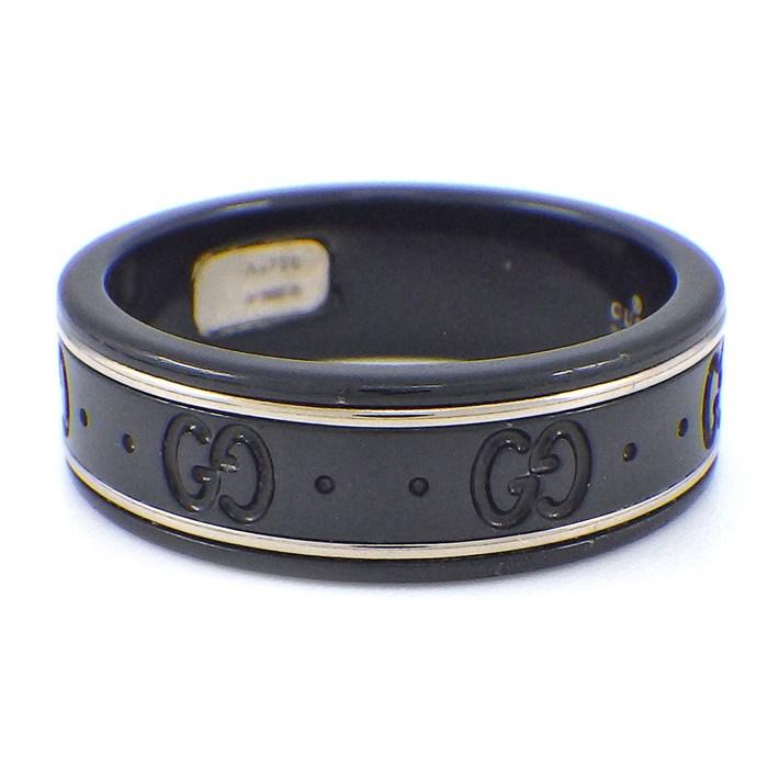 GUCCI リング アイコン オンライン限定 シンバンド 225985 I19A1 8061 GG ロゴ K18WG ブラック セラミック 21号 / #22 【中古】
