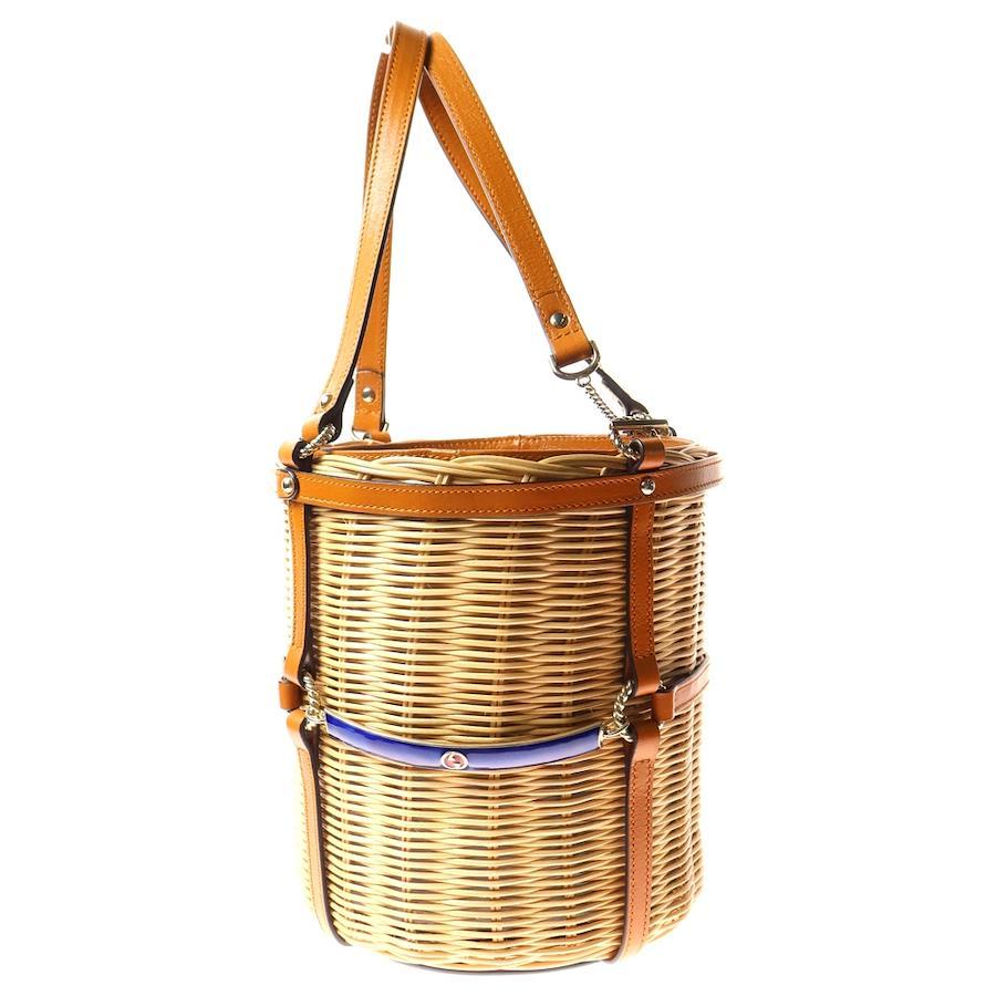 [モデル]インターロッキングG フラワー ハンドバッグ かごバッグ ブラウン 524830