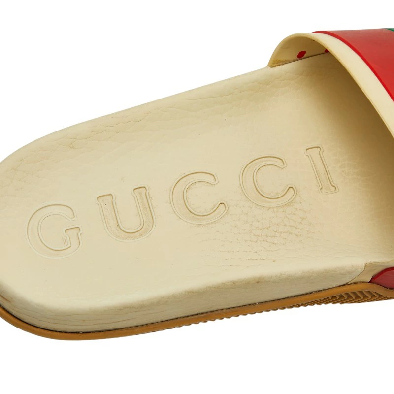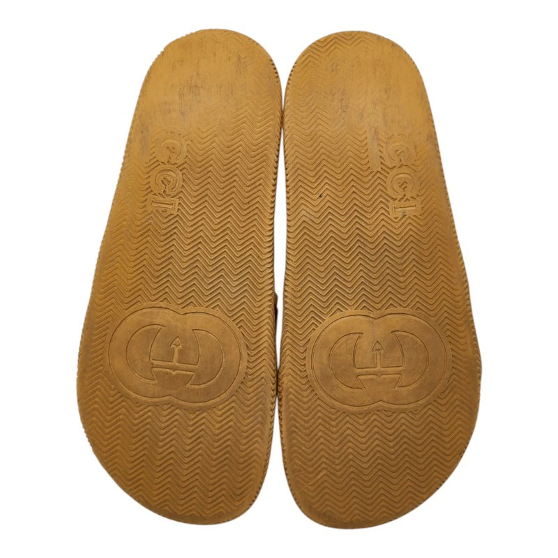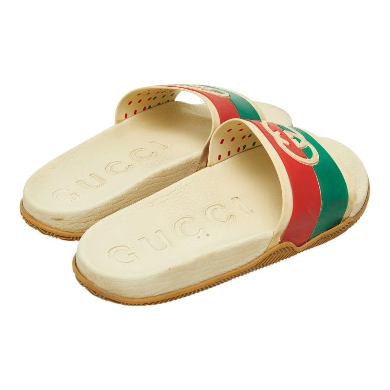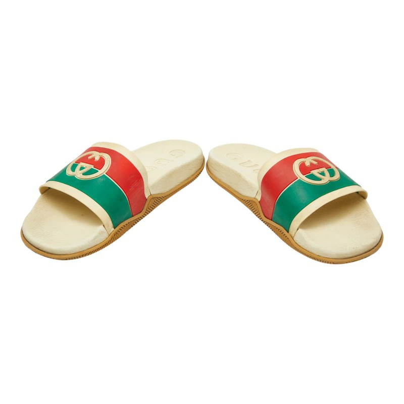 - グッチ インターロッキングG スライドサンダル シャワーサンダル 655461 ベージュ グリーン レッド ラバー メンズ GUCCI 【中古】