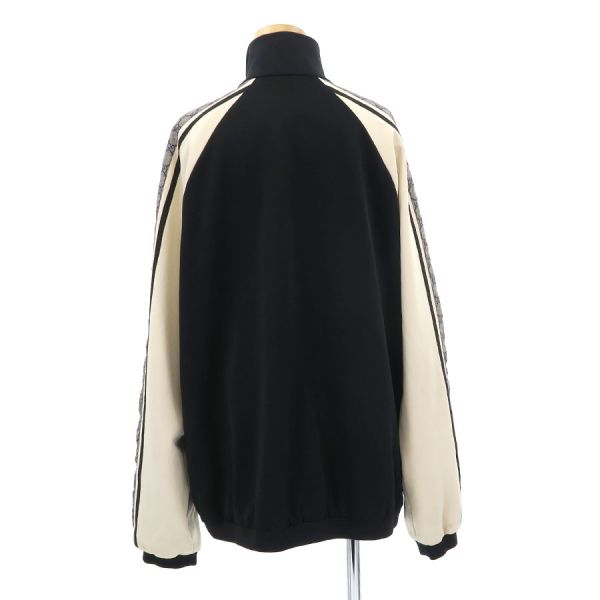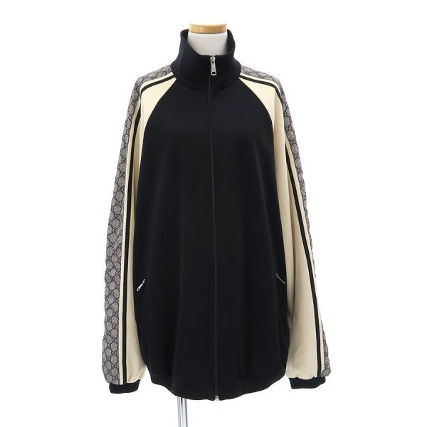 ■採寸M 裄丈:95cm B:114cm 着丈:69cm■素材表地:ポリエステル55% コットン45% 一部装飾部:ポリエステル84% ナイロン14% ポリウレタン2% 一部:ナイロン100% 裏地:ナイロン100%■コメントグッチからジャケットが入荷しました。サイドに施されたGGロゴのラインが入ったスポーティーでオーバーサイズのジャケットです☆状態は全体にややシワ、後襟周りに汚れ、両袖口裏に薄汚れ、前中央下に糸ツレ、左袖外側に若干シミ汚れ等が見受けられますのでBランクでのご紹介です。普段着としてはまだまだ問題なくご着用いただけます◎