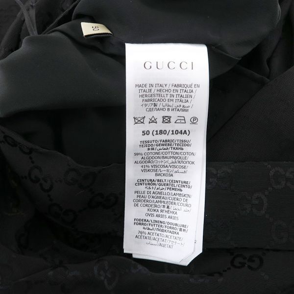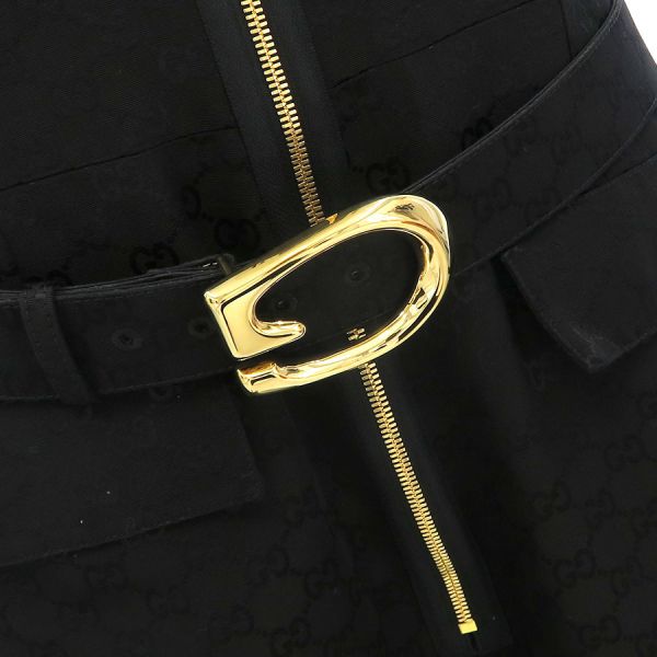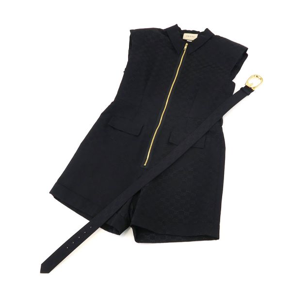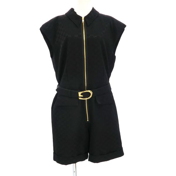■採寸#50 本体:肩幅:56cm アームホール:52cm B:106cm W:92cm H:112cm 着丈:95cm ベルト:全長111cm 幅:4cm バックル:8×5.5cm 実用寸法:88.5~98.5cm■素材本体:コットン59% レーヨン41% 裏地:アセテート76% シルク24% ベルト:羊革■コメントグッチからジャンプスーツが入荷しました。アイコニックなGGパターンが全体にデザインされた、一目でグッチとわかる存在感のあるジャンプスーツです☆ゴールドカラーのジップとGバックルベルトがラグジュアリーな雰囲気が素敵です☆状態は全体にやや毛埃の付着、後身頃下から33cm辺りにスレやベルトのバックルにややスレ・くすみ等が見受けられますが、目立つ汚れやダメージはないので、Aランク寄りのBランクでのご紹介です。まだまだ問題なくご着用いただけます。