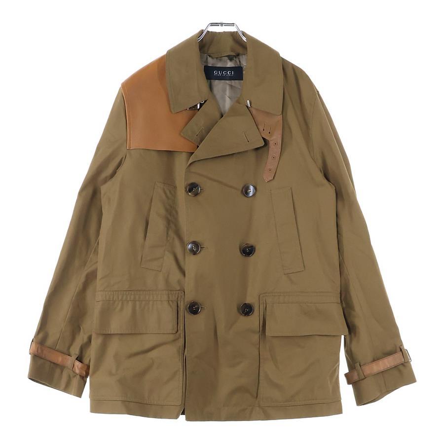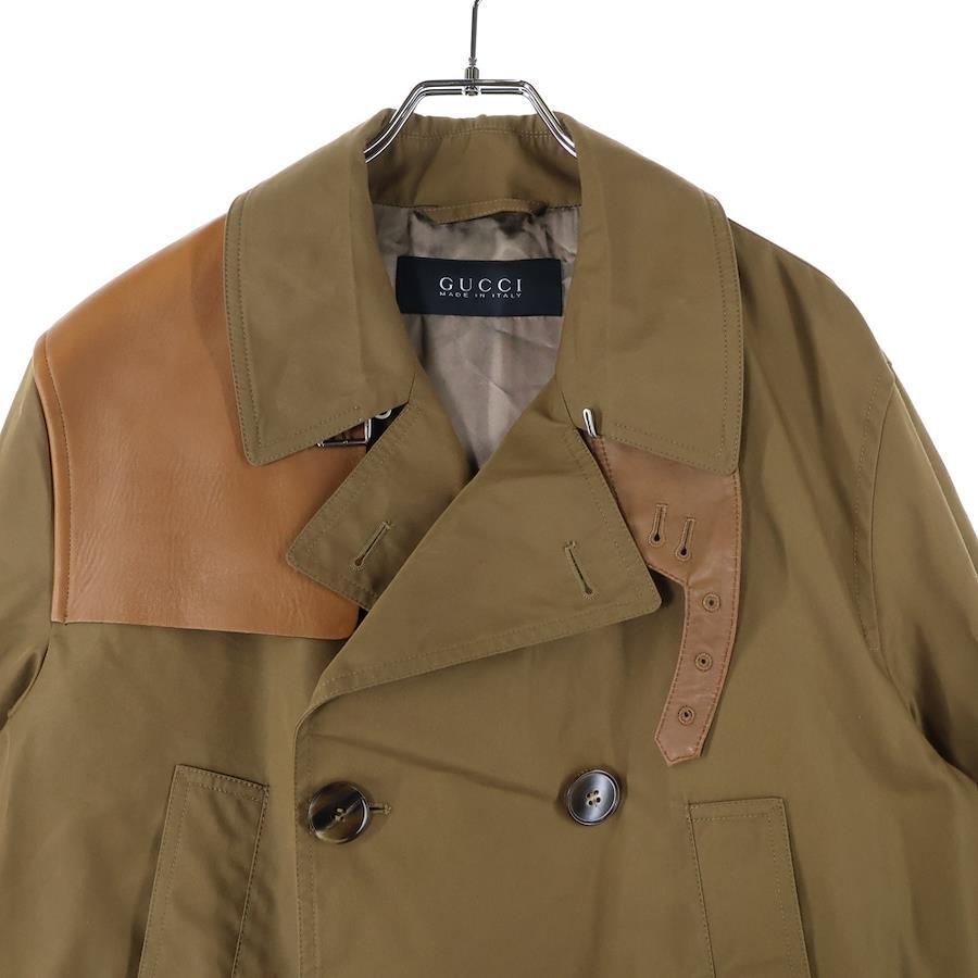[モデル]レザー切り替え コットンナイロン トレンチ ジャケット ショート コート ブラウン 366617