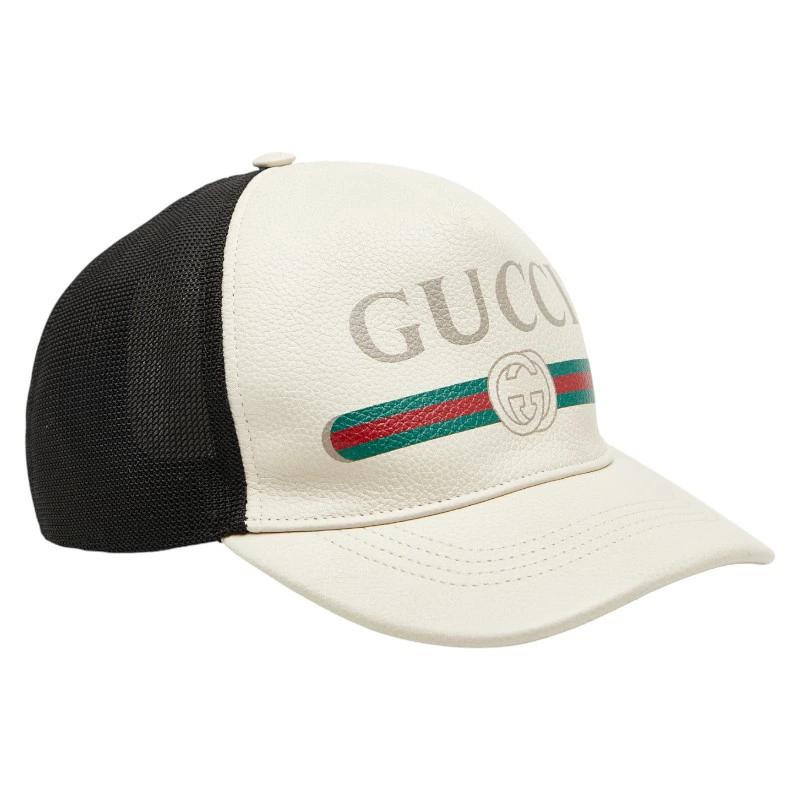 Gucci Logo Baseball Cap, Size: XL (60cm), 426887, Ivory Multicolor Leather and Nylon, Men's, Pre-owned
