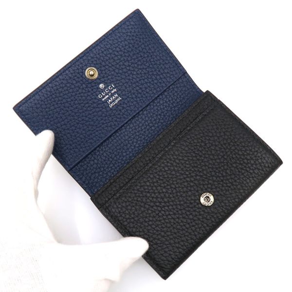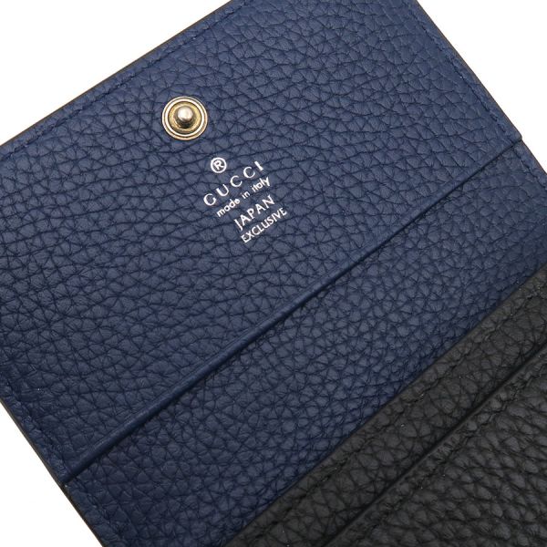 グッチ ロゴ・カードケース/日本限定のご紹介です。ブラック?紺のバイカラーで、前面にはGUCCI ロゴがあります。フラップ裏にJAPAN EXCLUSIVEのスタンプがあります。ポケット?3の定番のタイプになります。状態はSランク。使用感はほとんど感じられず、プレゼントにもいいですね☆グッチ ロゴ・カードケース/日本限定はいかがでしょうか☆