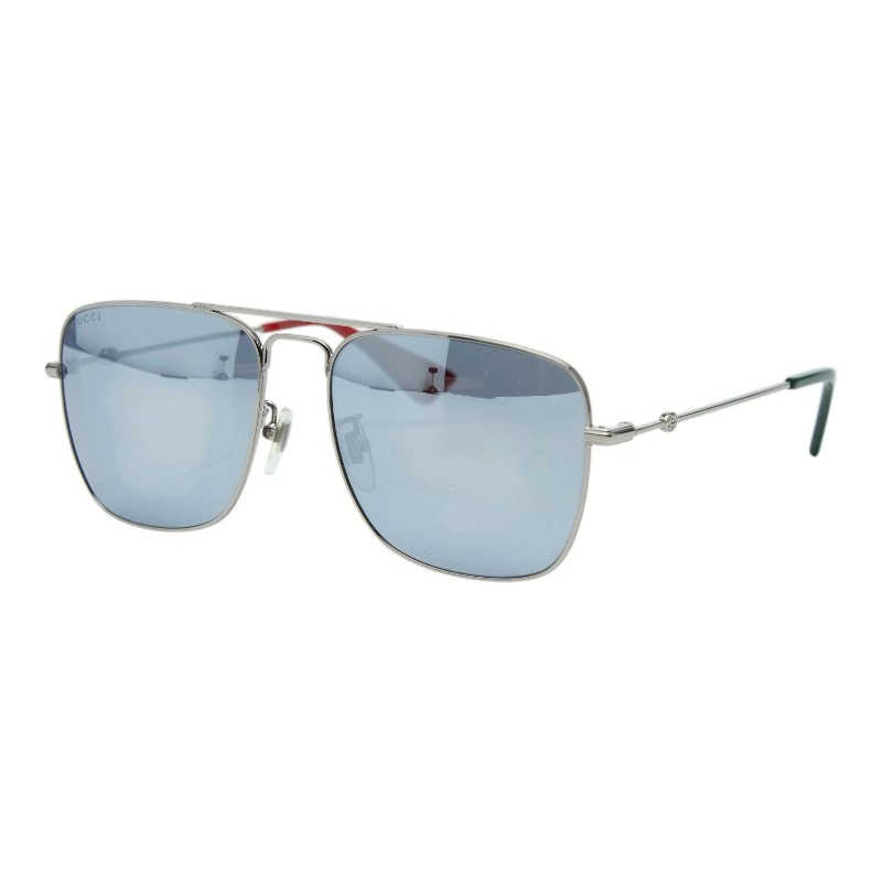 - グッチ ロゴ ティアドロップ サングラス GG0108S シルバー グリーン レッド メタル プラスチック レディース GUCCI 【中古】