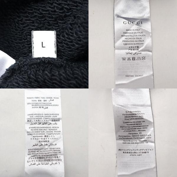 ・メーカー :GUCCI / グッチ・製品型番 :475374・サイズ :表記サイズ:L,肩幅 (約cm):58,身幅 (約cm):58,着丈 (約cm):64,袖丈 (約cm):60,・色(柄)の系統:ブラック・デザイン :(メンズ)トップス/パーカー (メンズ)トップス/トレーナー・付属品 :なし-------------商品状態-------------・ランク :B・詳細 :スレ、若干の毛羽立ち等、一般的な使用感はありますが、目立つ大きなダメージはありません。