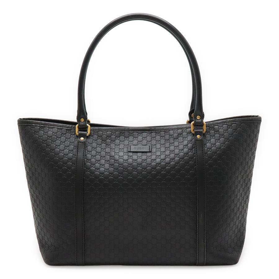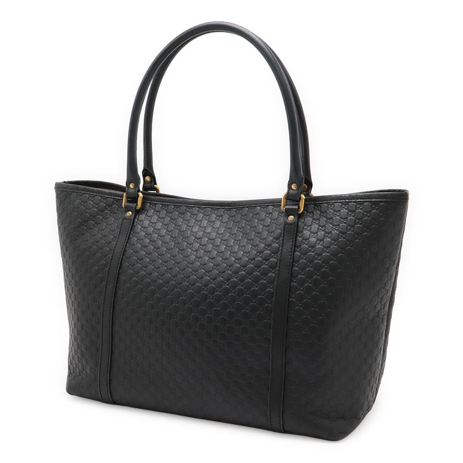 GUCCI Micro Guccissima Tote Bag, Semi-Shoulder Shoulder Bag, Black Leather with Gold Hardware, Outlet Item 449647