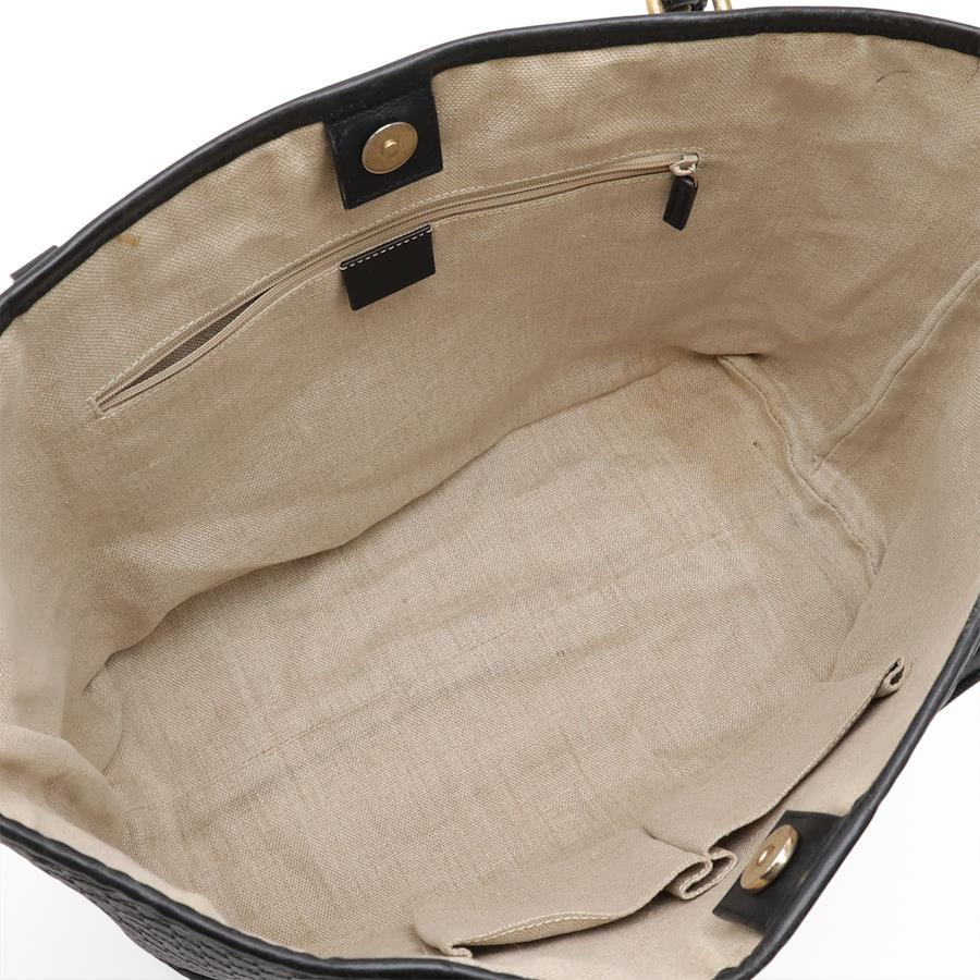 【商品説明】[サイズ]W33.5cm-44cm H26cm D15.5cm[材質]マイクログッチシマレザー[カラー]ブラック[仕様]内側ファスナーポケット1、小ポケット2[付属品]なし[重さ]約680g