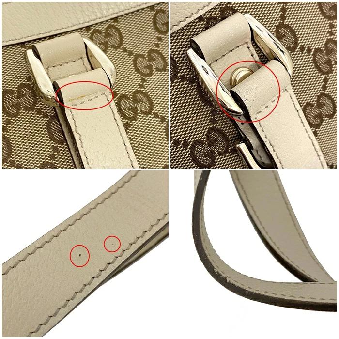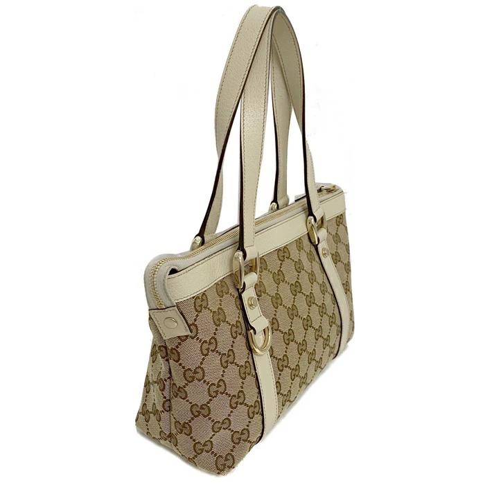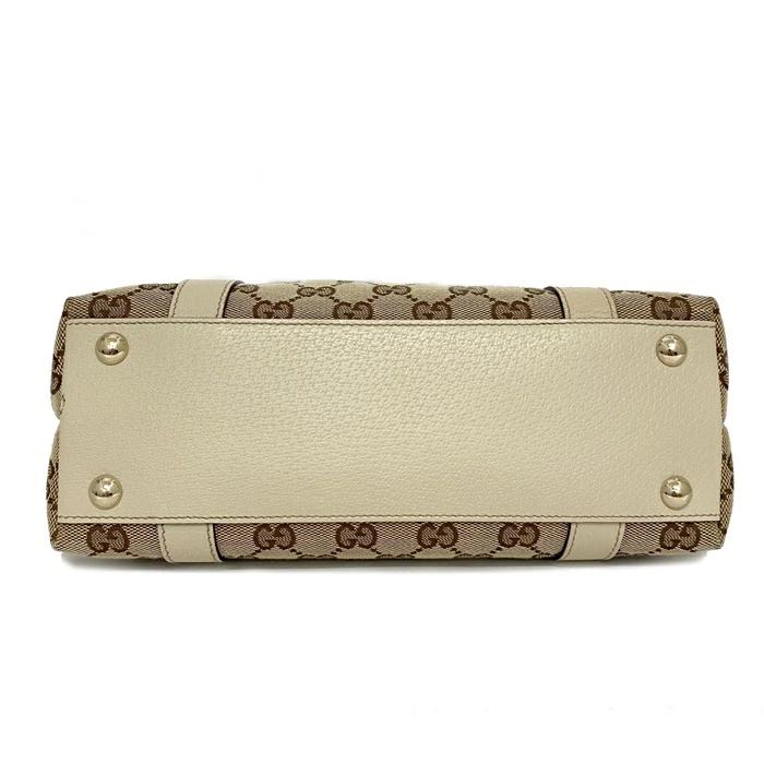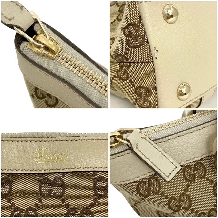 コメント:グッチ定番・人気のGG柄ミニハンドバッグ。コンパクトサイズながらも9.5cmのマチで収納力は抜群。洋服を選ばないベージュ・ホワイトのカラーはデイリーに活躍間違いなしのアイテムです。