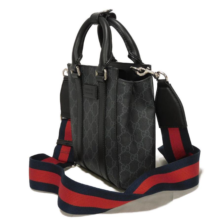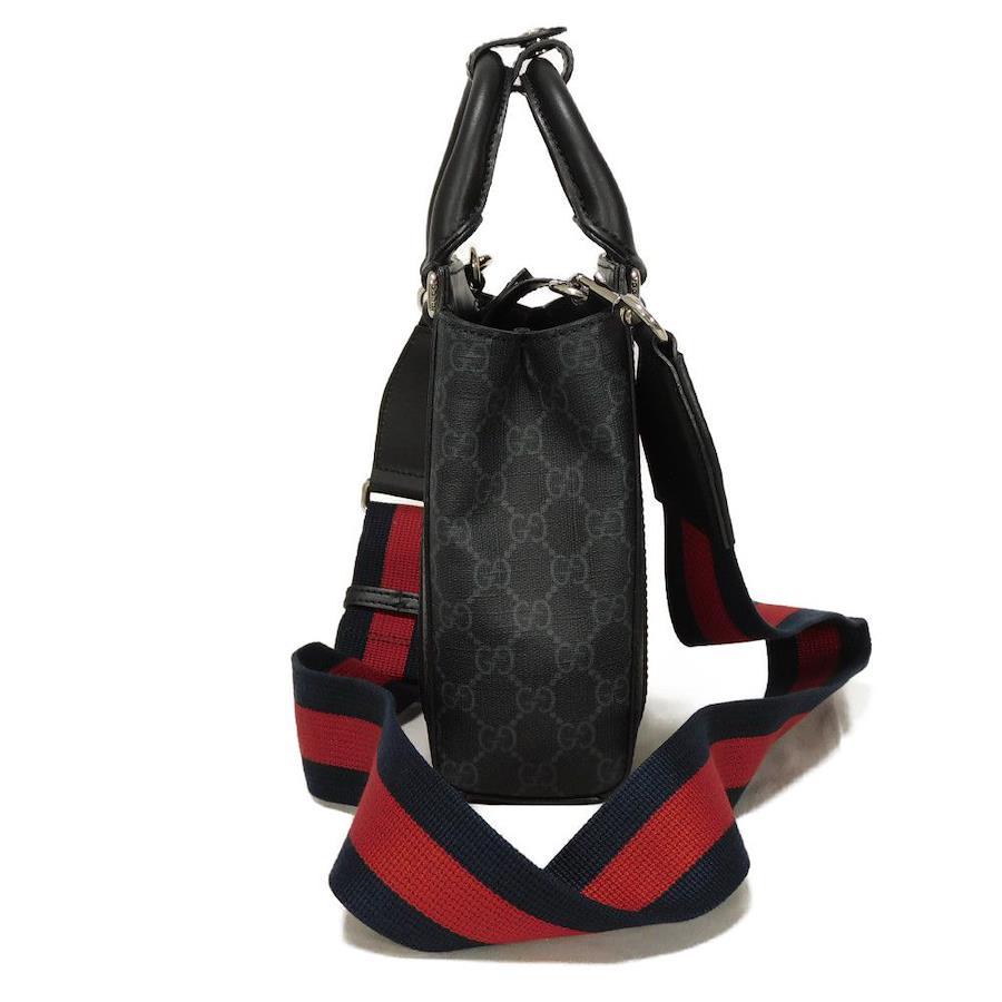 グッチのロゴが刻印されたレザーパッチを組み合わせた、GGスプリームキャンバスにウェブストライプのショルダーストラップを組み合わせた「ミニ トートバッグ」ハンドバッグです。 |