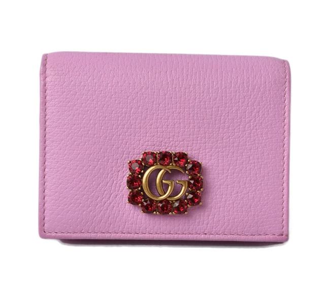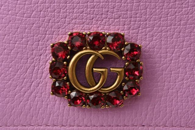 GUCCI 折財布 499783 GGマーモント ラインストーン ローズピンク