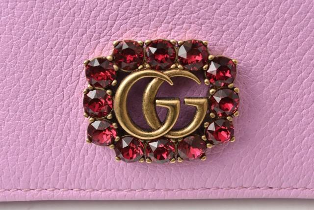 GUCCI 折財布 499783 GGマーモント ラインストーン ローズピンク