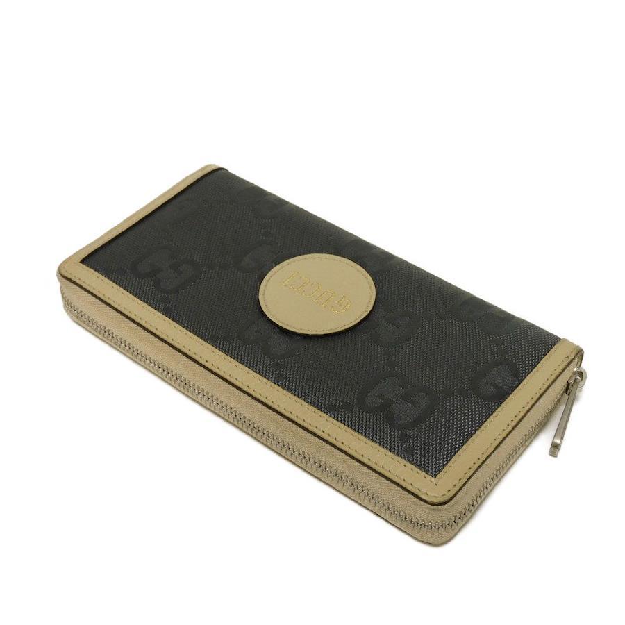 再生ナイロン糸を用いた素材にグッチのGGパターンと箔押しロゴをデザインした「オフ ザ グリッド ジップアラウンドウォレット」ラウンドファスナー式長財布です。