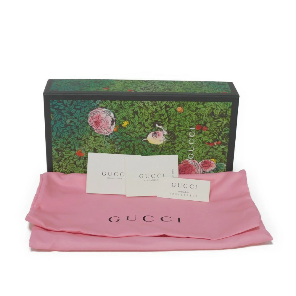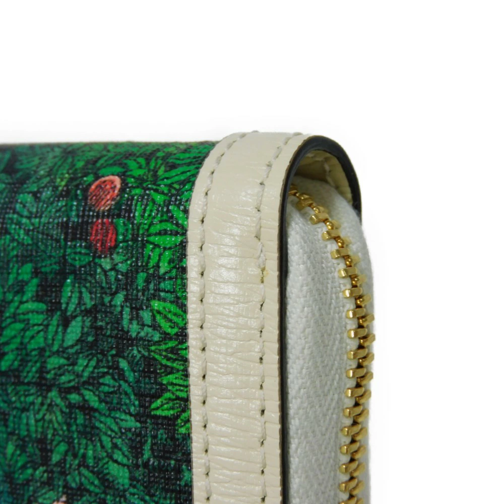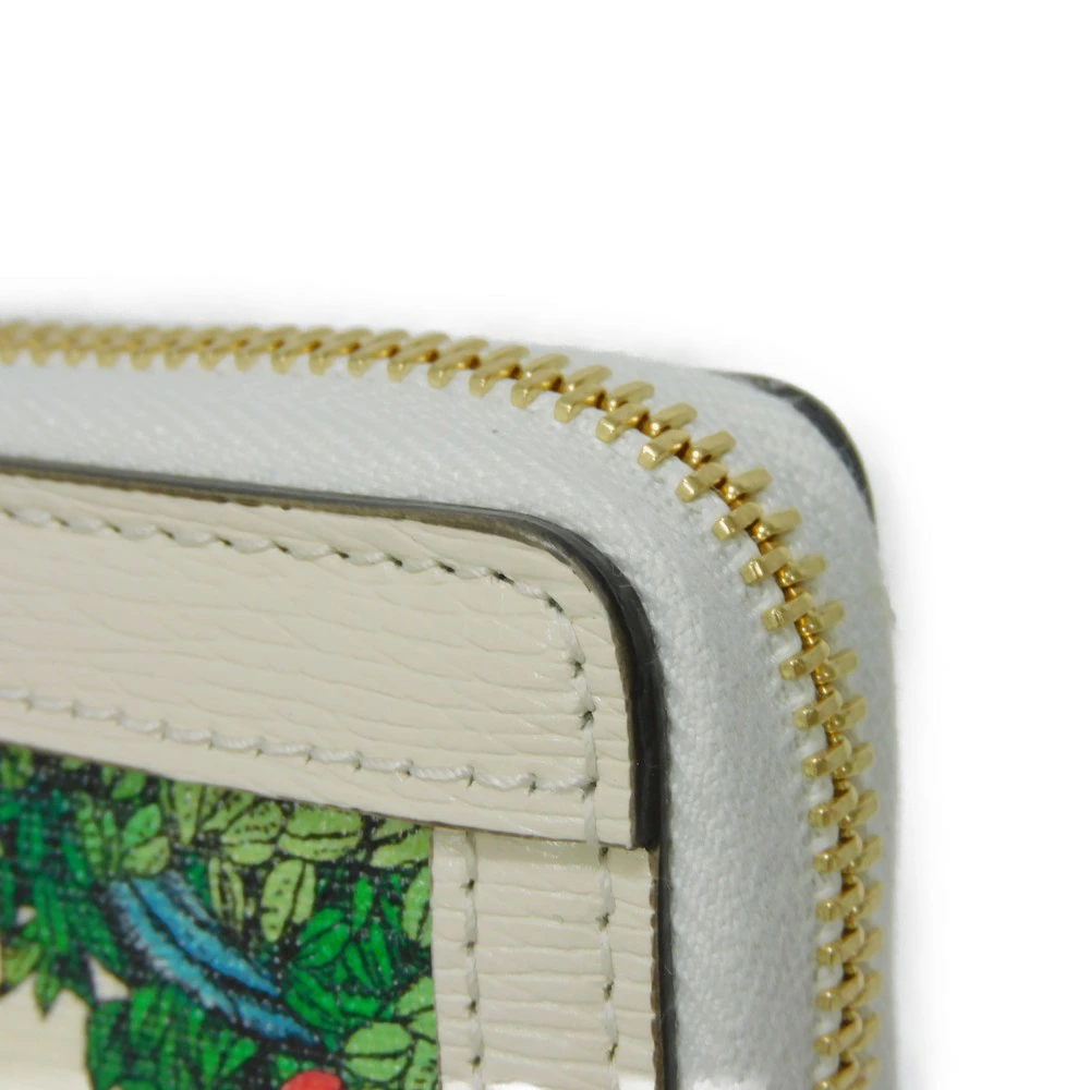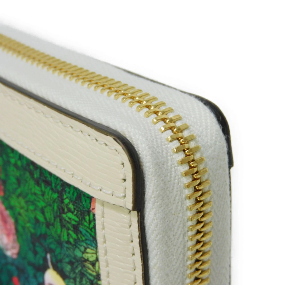 グッチのGGマーモントとウェブストライプがあしらわれた、スプリームキャンバスに鳥やウサギたちが棲む幻想的なガーデンモチーフのイラストがプリントされた「ジップアラウンドウォレット」ヒグチユウコ日本限定コレクション。 |