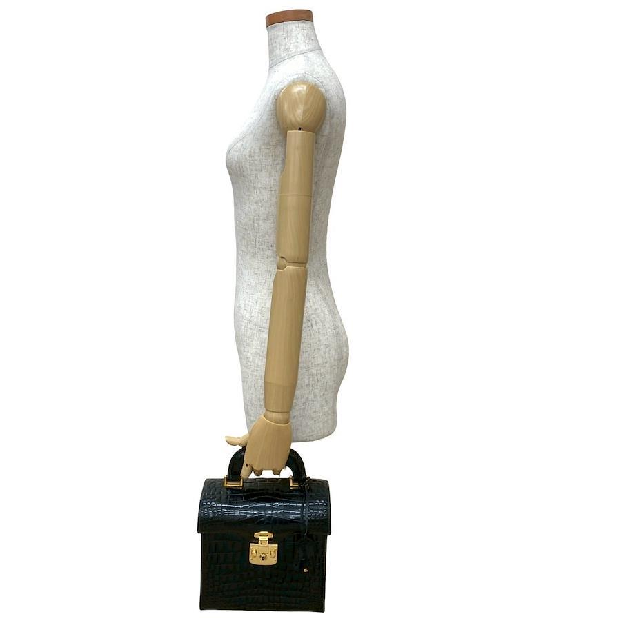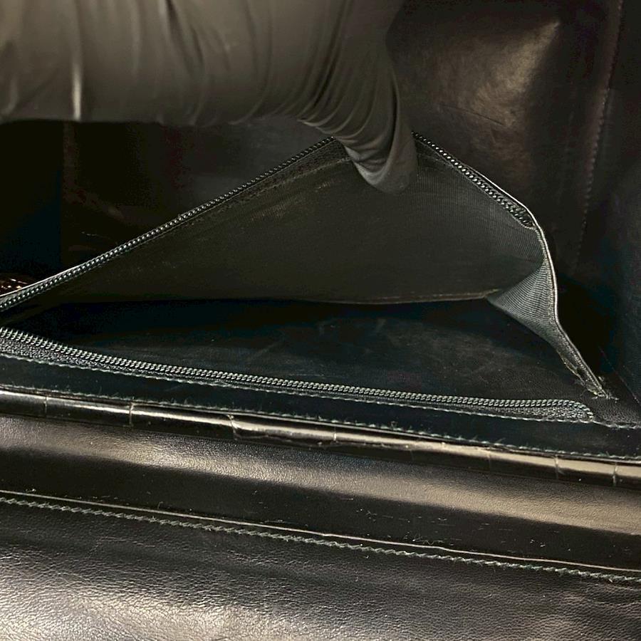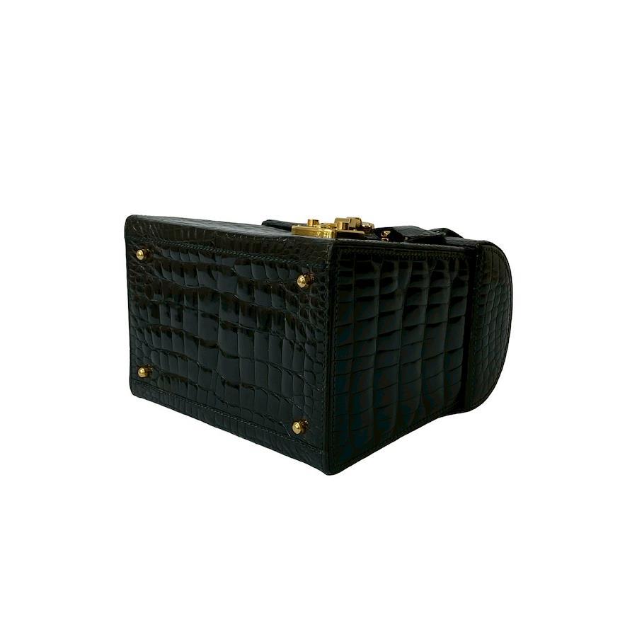 GUCCI Old Gucci Vintage Ladylock Crocodile Leather Handbag Vanity Bag Black 32987