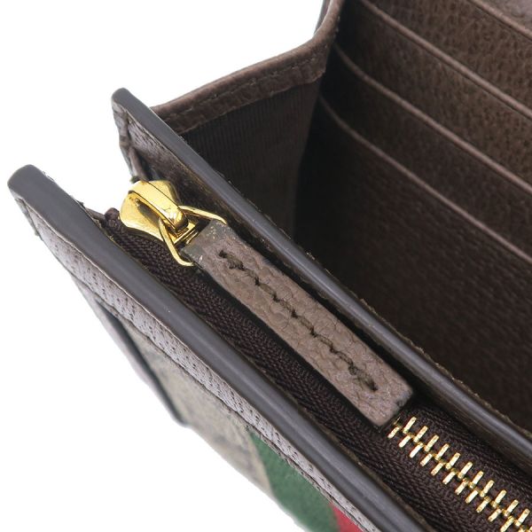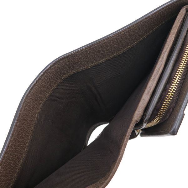 グッチ オフィディア・二つ折り財布のご紹介です。前面に金メッキのGGの金具、GGスプリーム?ブラウンレザーに緑?赤のウェブラインが埋め込まれたモデル。フラップはホック止め、内部はファスナー付き小銭入れ、カードポケット?6,スリットポケット、札入れなどがあります。状態はAランク。サイドに型崩れ、縁周りにスレ、内部に化粧品のニオイなどが感じられます。グッチ ファスナー付き財布はいかがでしょうか☆