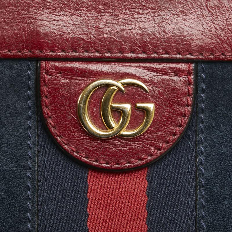 Gucci Ophidia Crossbody Chain Shoulder Bag 503877 Navy Red Leather Suede Women's GUCCI [Pre-owned]