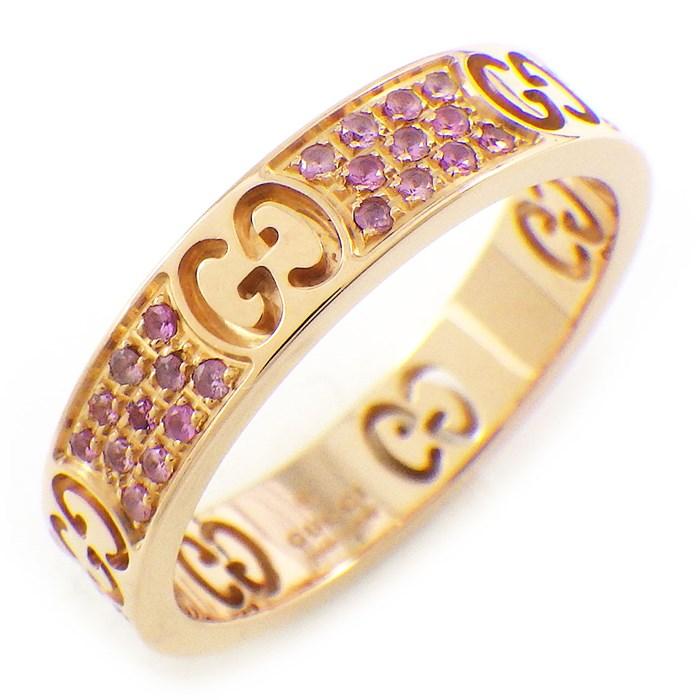 GUCCI リング アイコン スターダスト GG ロゴ パヴェ ピンクサファイア K18PG 13.5号 / #14 【中古】