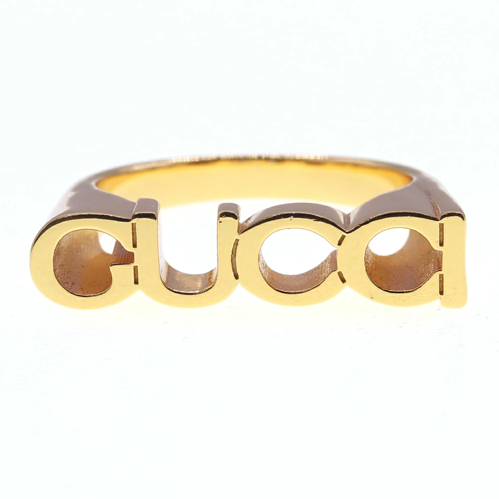 グッチリングロゴリング773855ゴールドメタルMサイズ中古指輪アクセサリーレディースメンズGUCCI