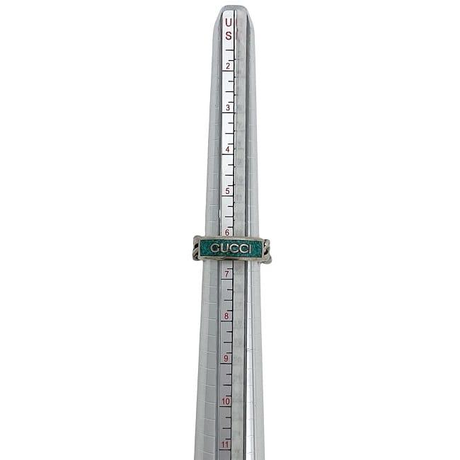 ☆---- 商品について ----☆グッチ リング ec-23688 シルバー グリーン 678711-8183 未使用 美品 JP12号 Ag 925 Sランク GUCCI チェーン 緑 銀 指輪 アクセサリー ロゴ プレート レディース メンズ 男女兼用 定番 人気 チェーンリング ジュエリー ヴィンテージ ブランド 本物 鑑定済み