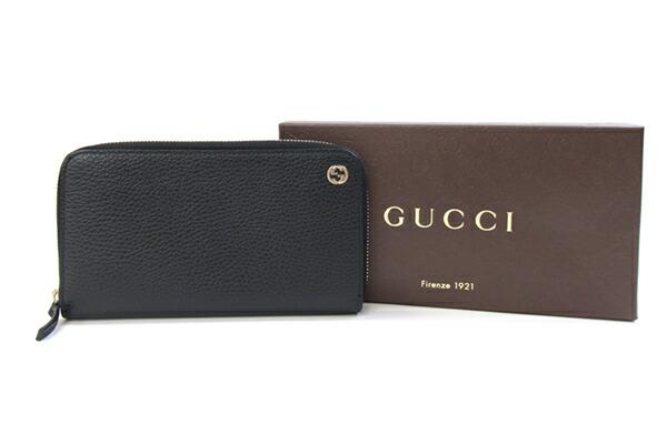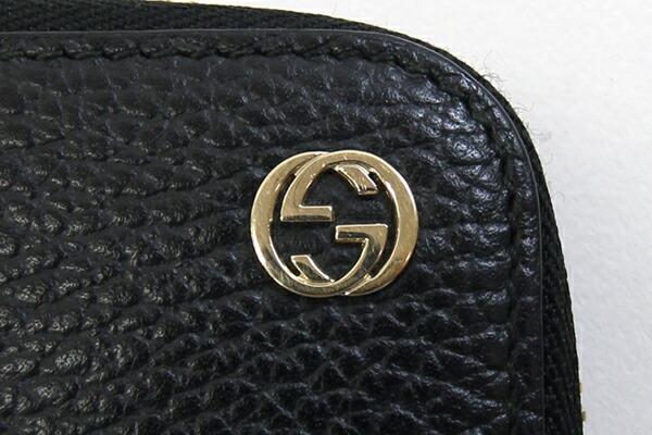 グッチラウンドファスナー長財布インターロッキングG449347ブラックレザー中古ロングウォレットジップウォレットメンズレディースGUCCI