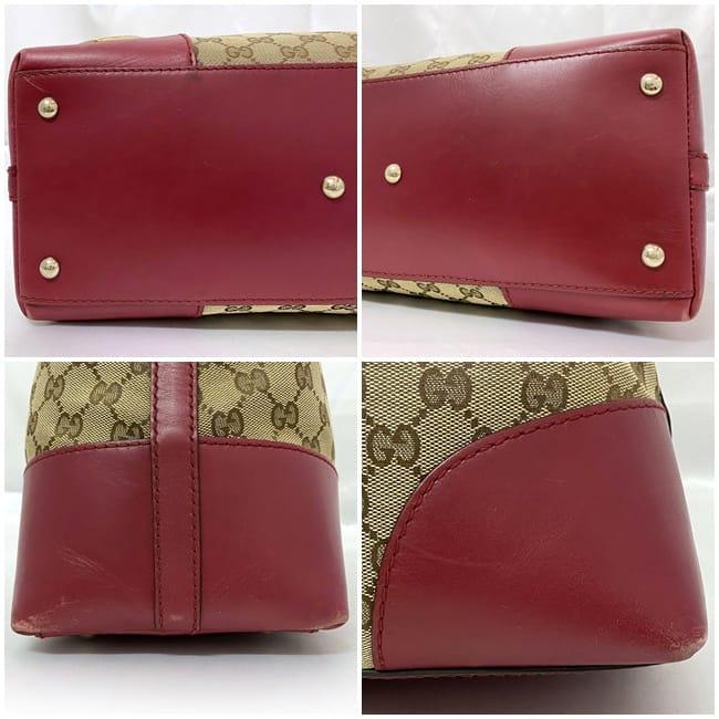 詳細説明:ハンドルやレザー部分に傷や擦れ、底部の角に擦れ、底面に薄傷や薄汚れ、内側に汚れなど使用感がございますが比較的綺麗なお品物です。