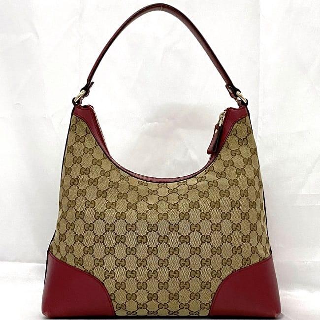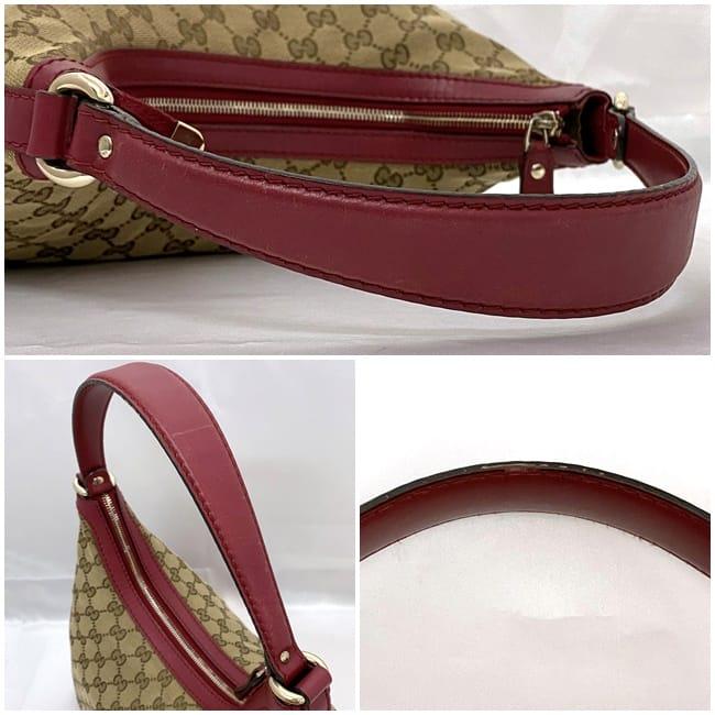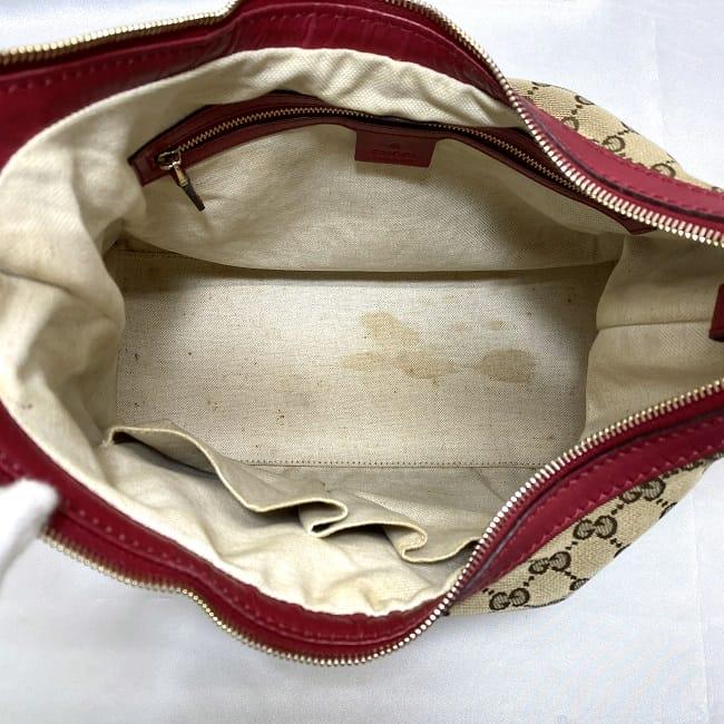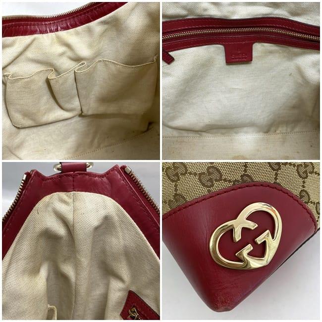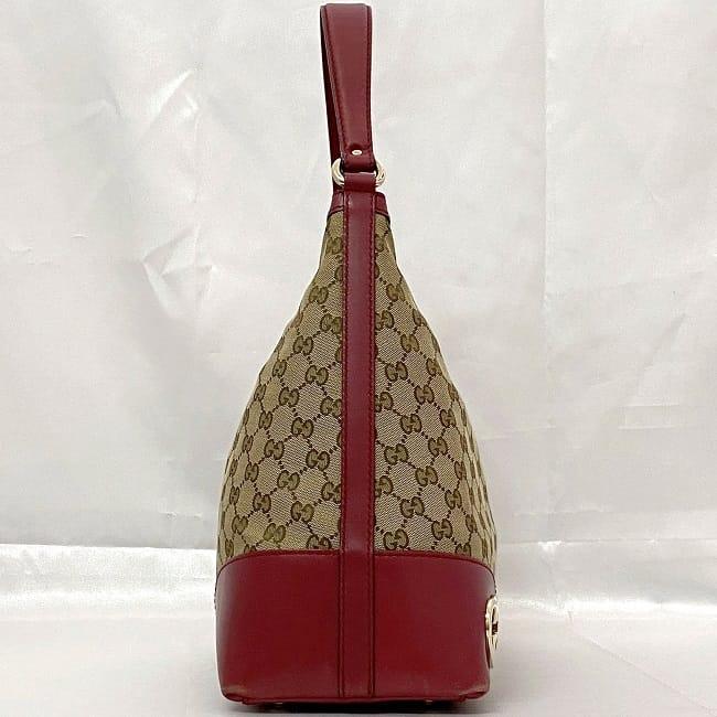 グッチ セミショルダー バッグ f-21842 ベージュ レッド GG ラブリー 257070 002404 ハート キャンバス レザー 中古 GUCCI 肩掛け ワンショルダー ロゴ 総柄 スプリーム 茶色 赤 ヴィンテージ 定番 人気 レディース メンズ ブランド 本物 鑑定済み