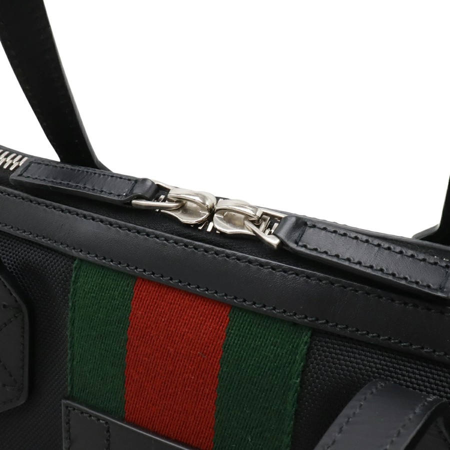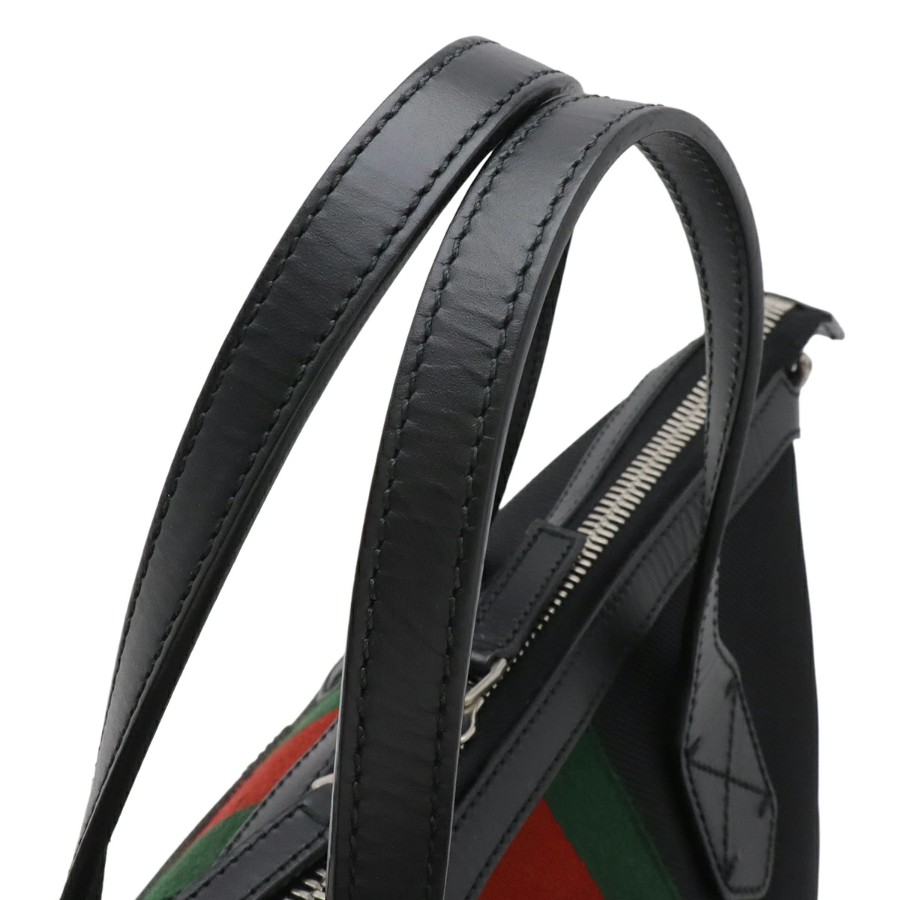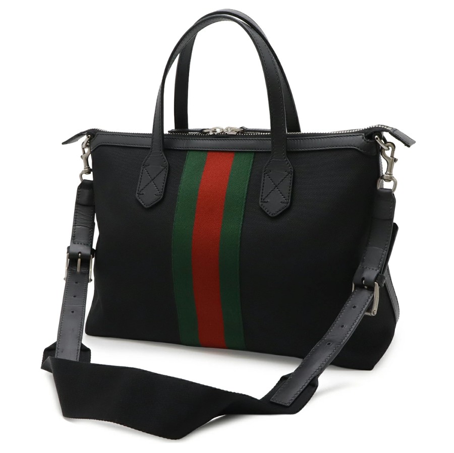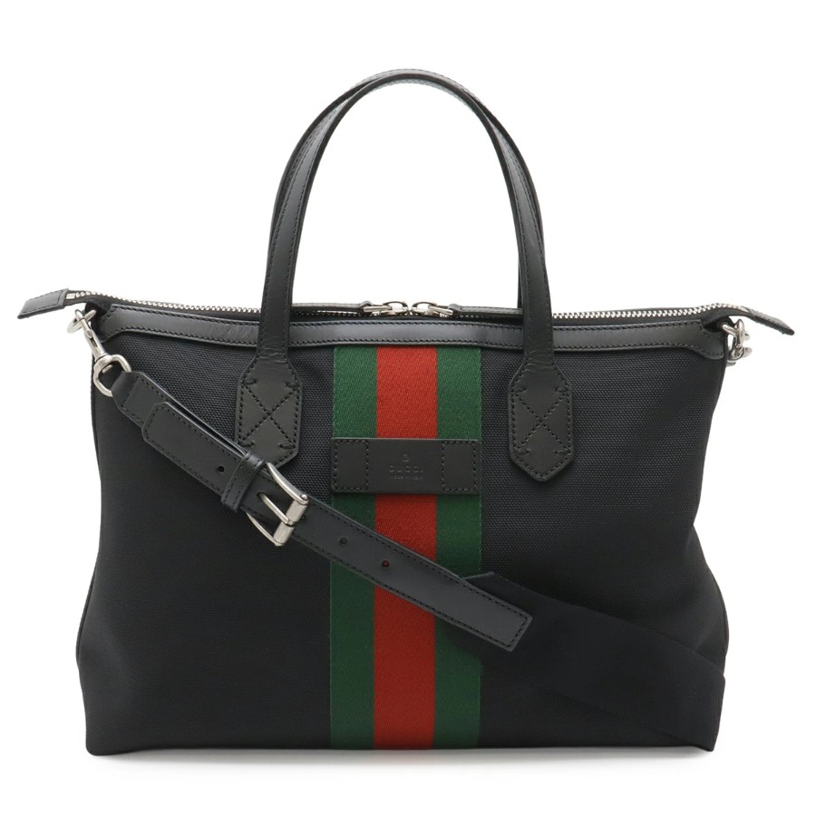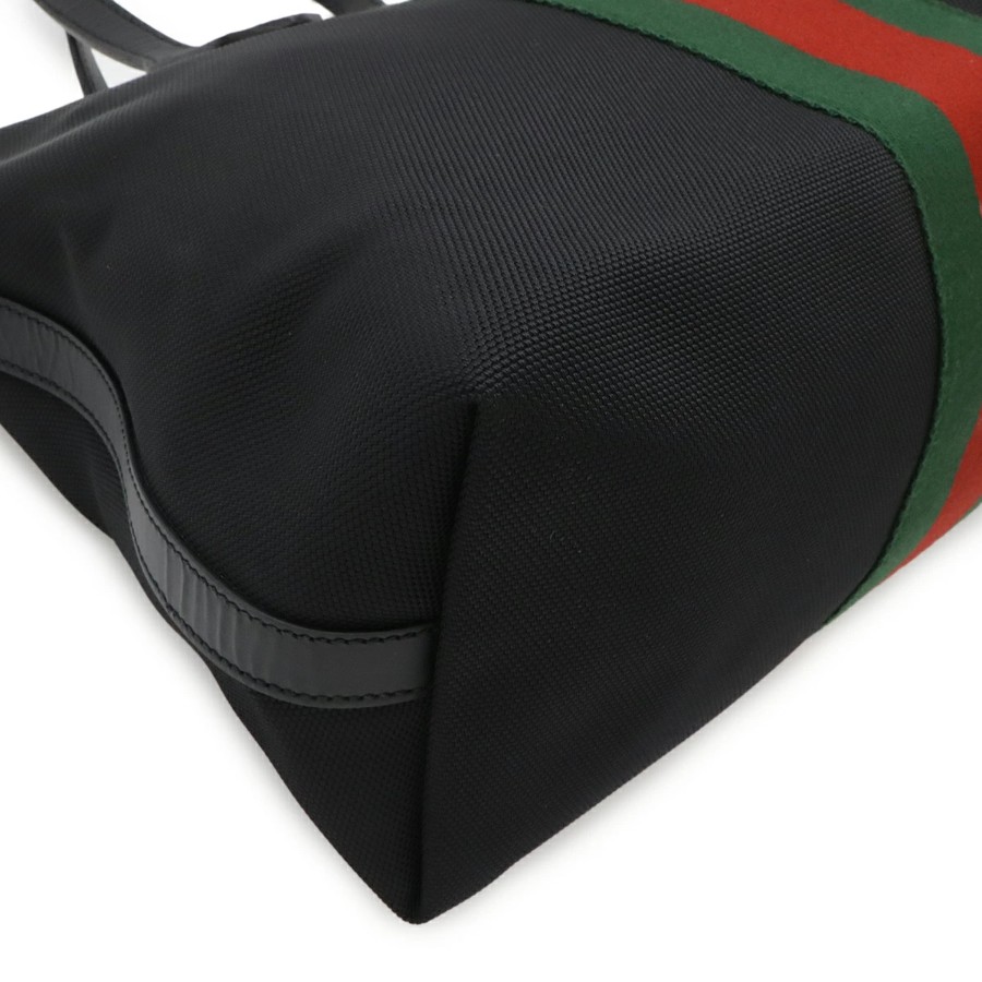 ブラックの無地キャンバスにレッドとグリーンのストライプがアクセントになったトートバッグ。