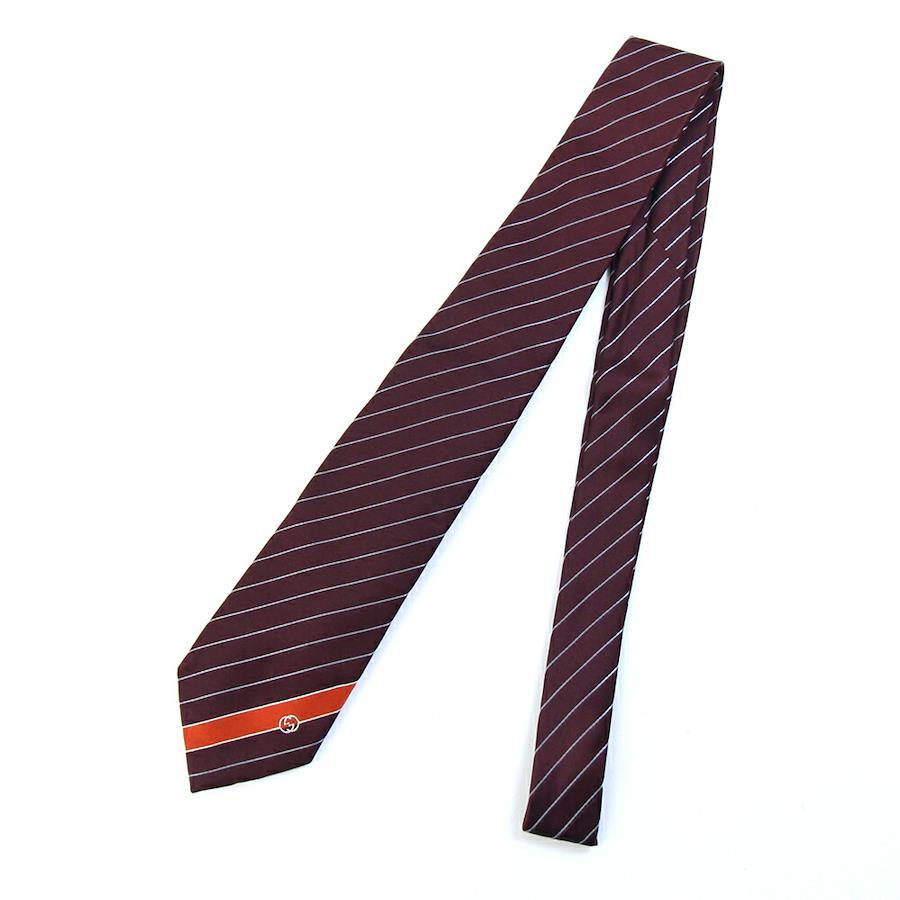 グッチネクタイ408866ボルドーシルク100%中古スーツビジネスファッションストライプメンズGUCCI