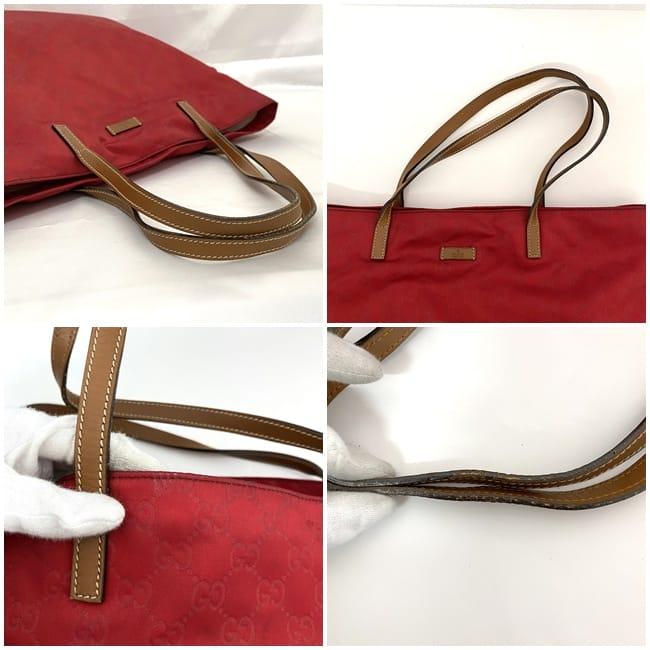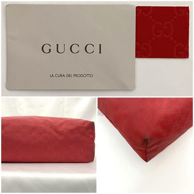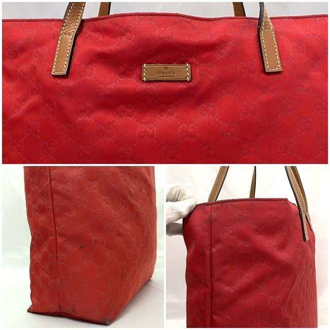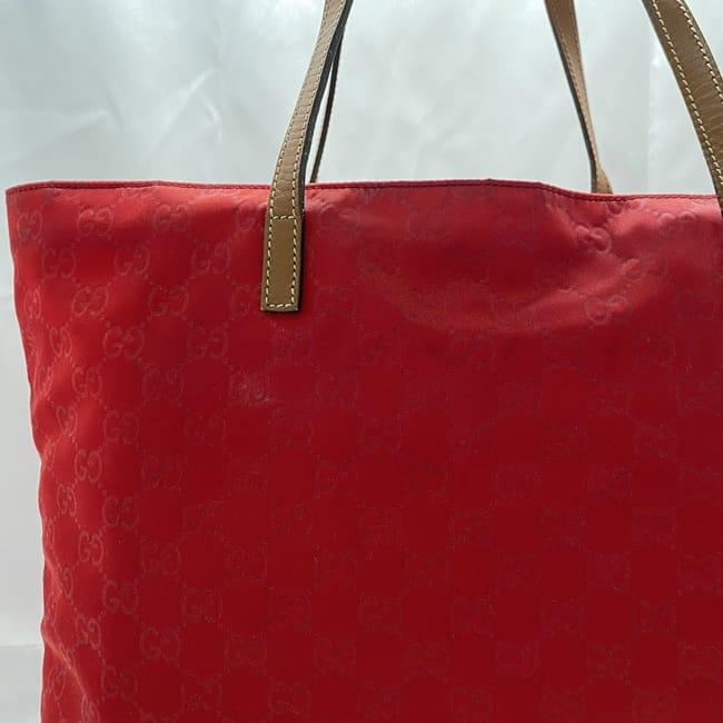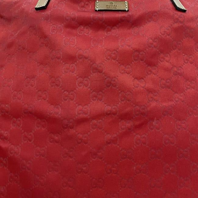 グッチ トートバッグ ec-22668 レッド 295252 軽い ナイロン レザー 中古 467891 GUCCI GGナイロン サテンナイロン 総柄 書類 a4 GG ロゴ 定番 人気 女性 レディース 赤色 トート 通勤 通学 ビジネス 仕事 鞄 バッグ お洒落 高級感 上品 ブランド 本物 鑑定済み