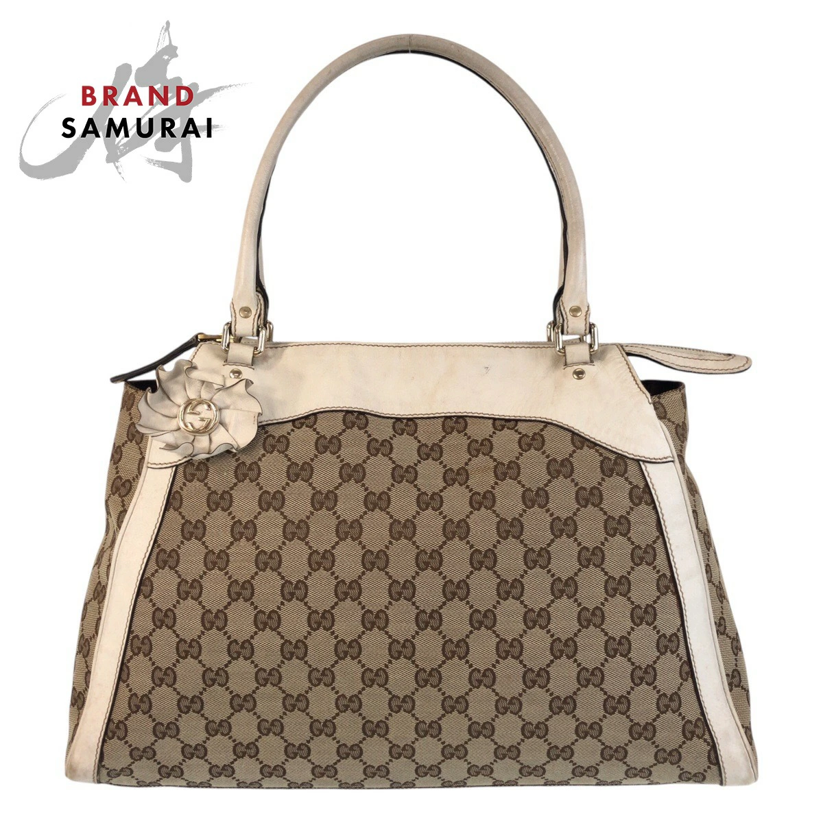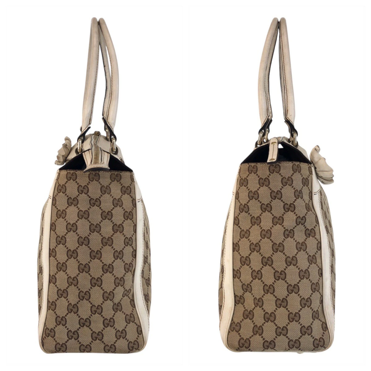 GUCCI Trophy Tote Bag in Beige and Ivory with Gold Hardware, GG Canvas/Leather, 189828, Women's, Shoulder Bag, 506589 (Pre-owned)