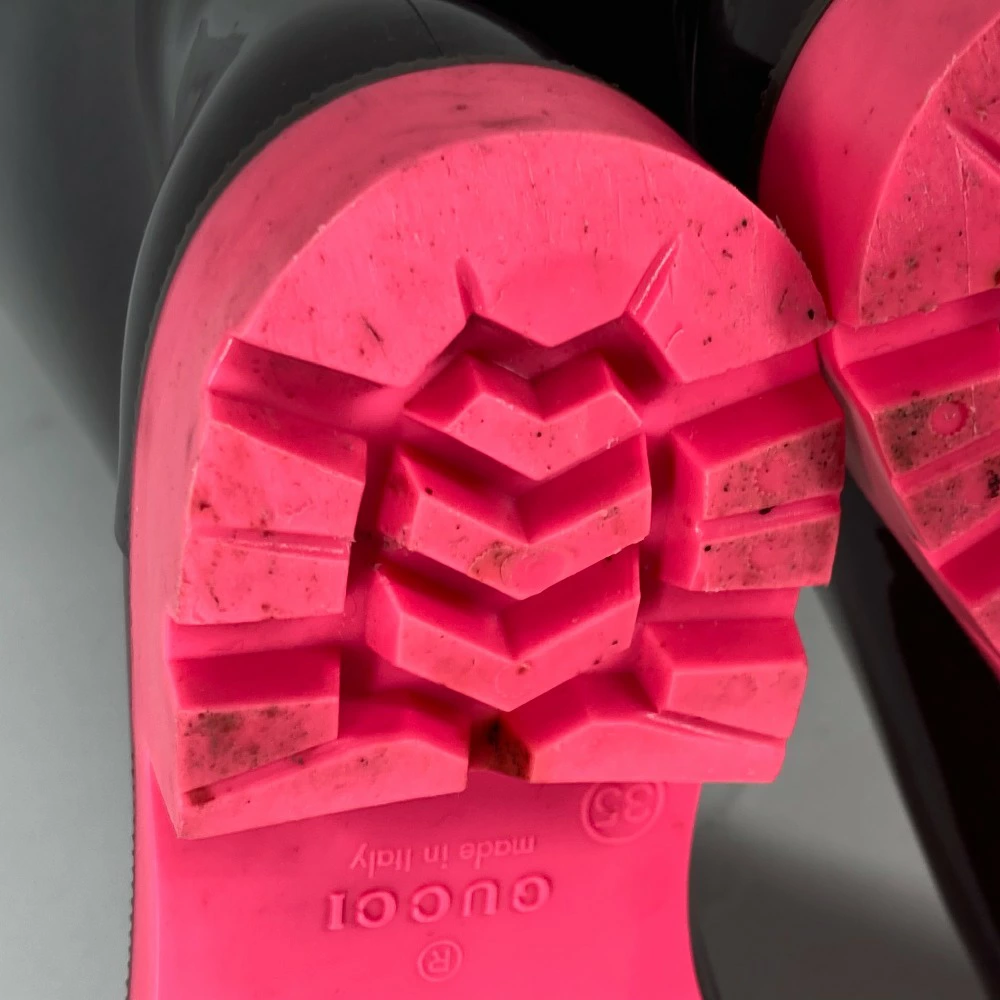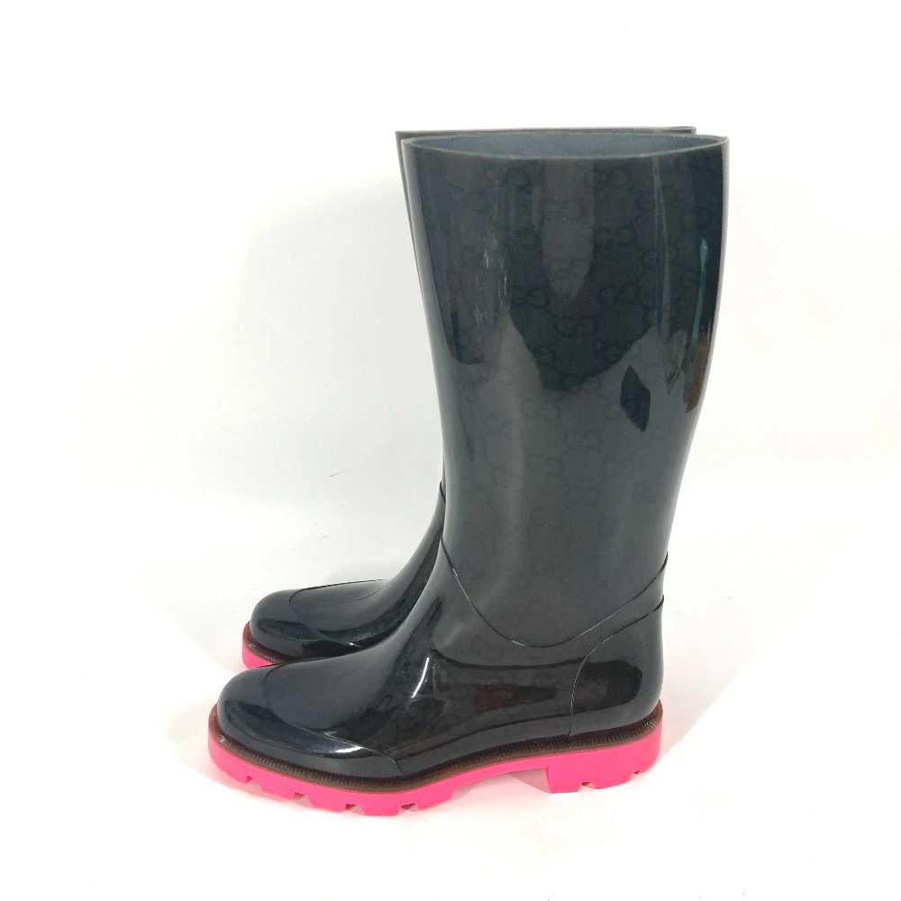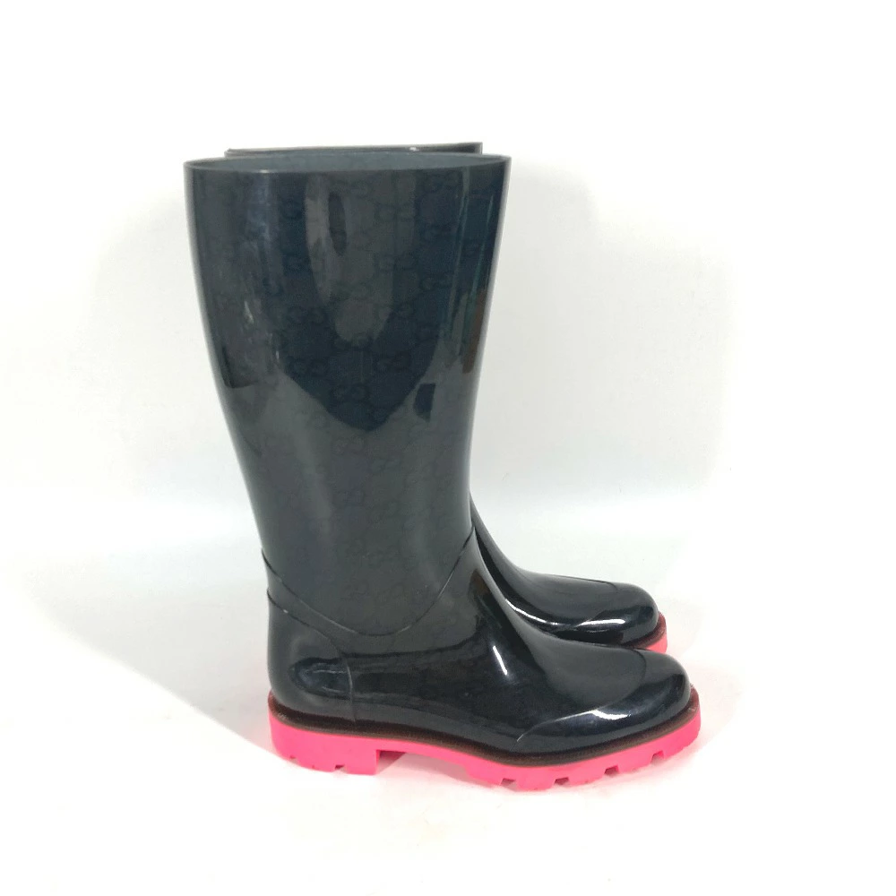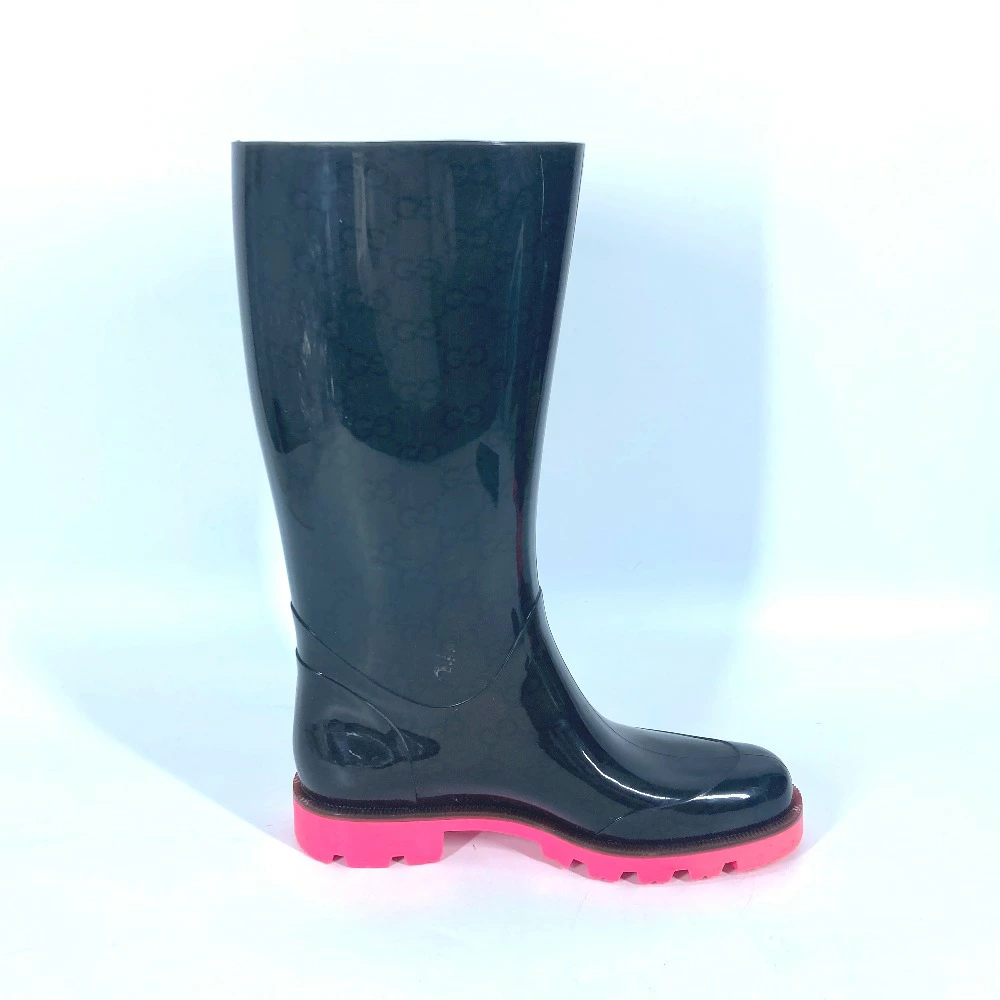 GUCCI Two-tone Logo Rain Boots, Women's Black Rubber [Pre-owned]
