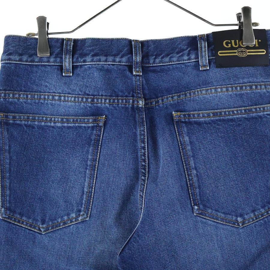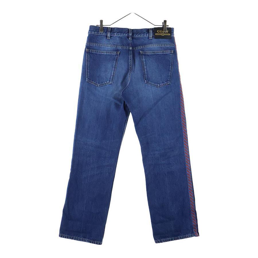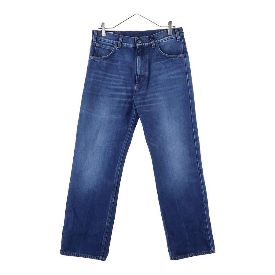 [モデル]ヴィンテージ加工 革パッチ サイドライン ジップアップ ストレートデニムパンツ インディゴ 561057