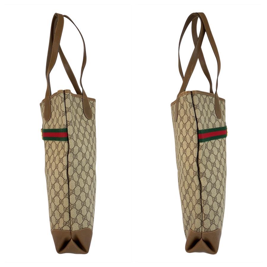GUCCI Vintage Sherry Line Old Gucci Beige GG Supreme Canvas/Leather Tote Bag with Gold Hardware, 002 904 0131, Women's Shoulder Bag, 505085 (Pre-owned)