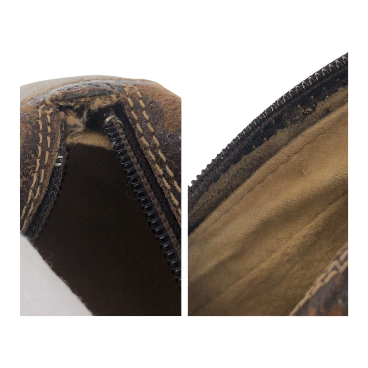 | 外側 | 表面:傷 、擦り切れ 、ヒビ 、色褪せ 、ほつれ 、型崩れ |