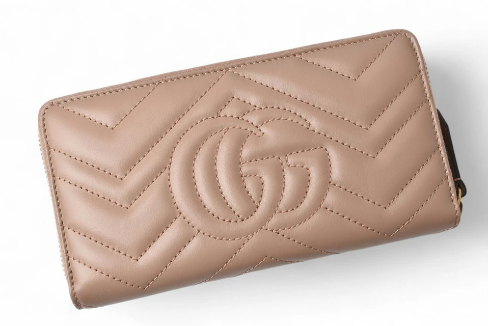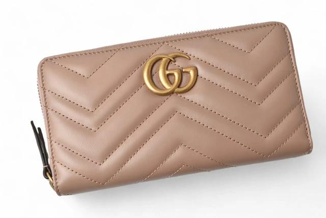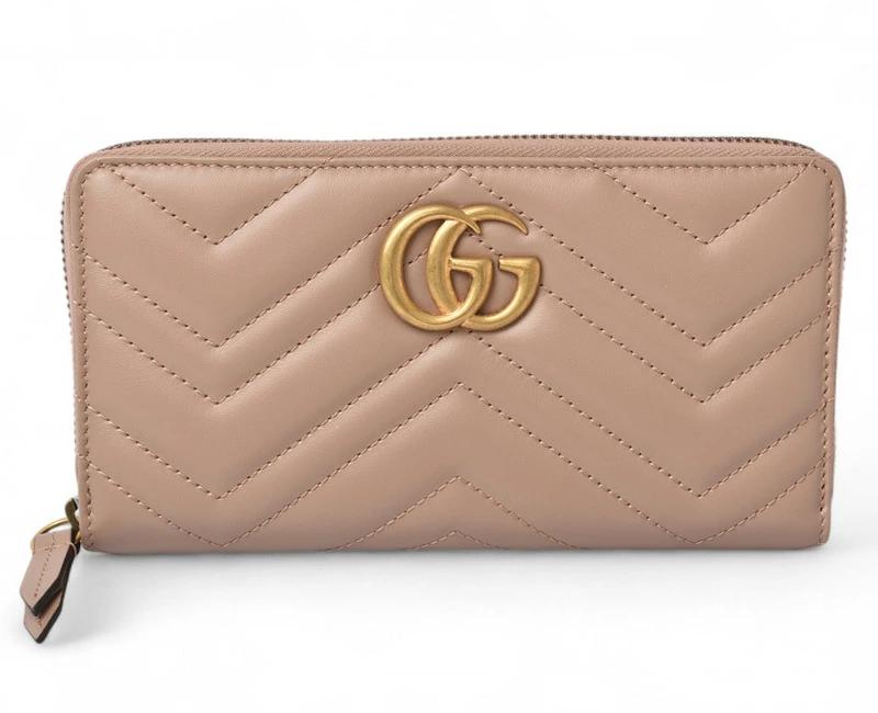 GUCCI 長財布/GGマーモント ラウンドファスナー 443123 レザー ダスティーピンク